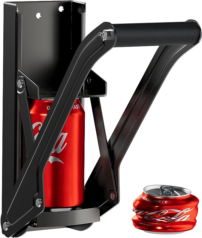 - USOS: Herramienta eficiente para reciclar y triturar basura, operada con una sola mano, que reduce el tamaño de frascos de aluminio de agua carbonatada, refrescos, cerveza y refrescos. Abre botellas de cerveza y más.