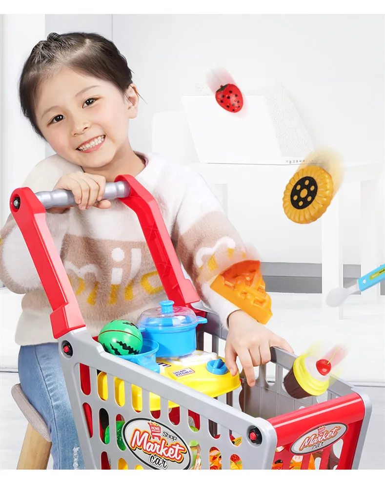 6 styles: medium shopping cart [size 32*18.5*36] + 20 fruits and vegetables [6 can be cut]