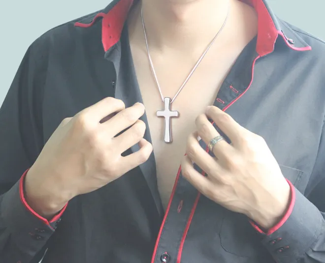 Tungsten Gold Pendant Cross Necklace Men's Accessory Christ Tungsten Steel Pendant