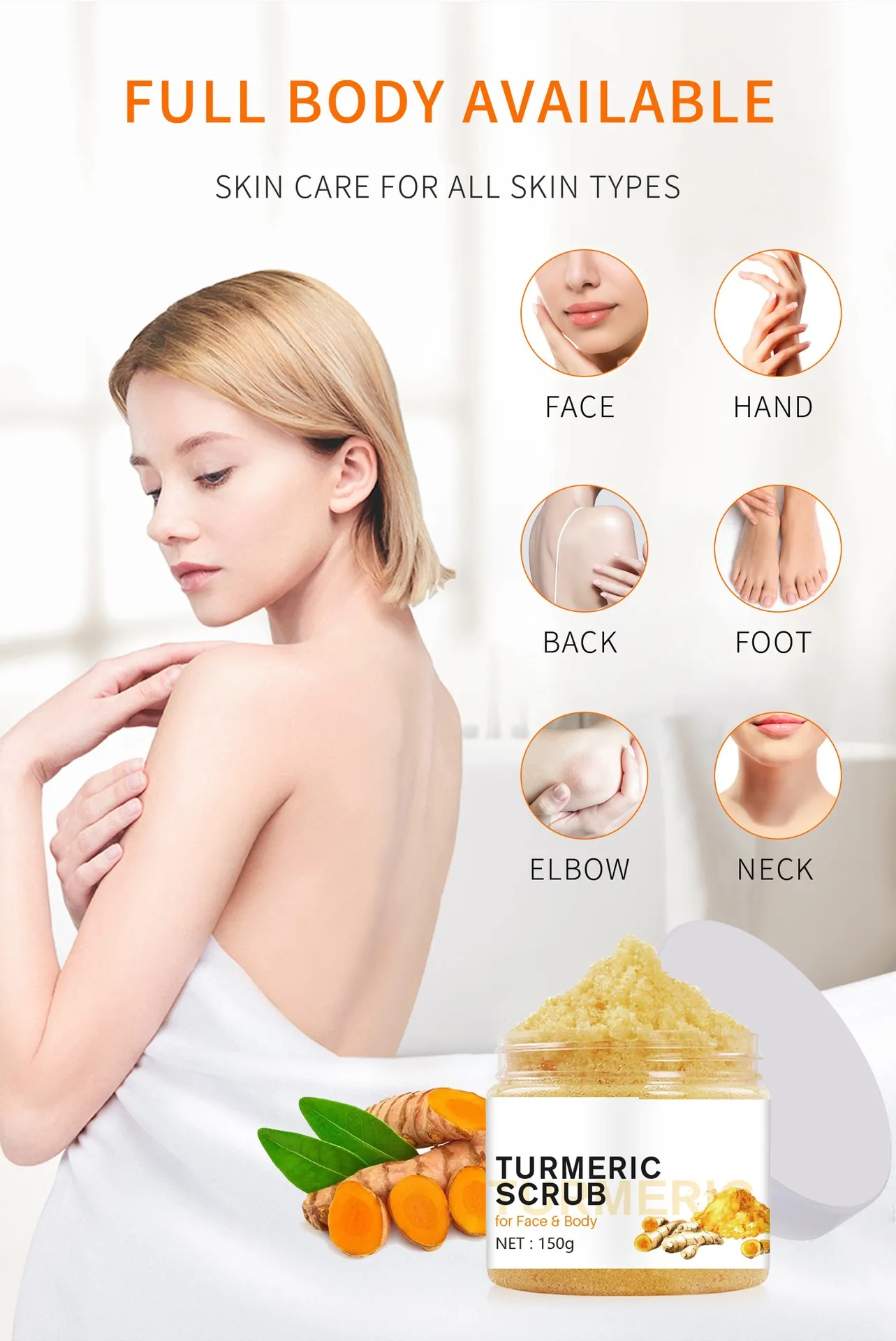 Turmeric, known for its anti-inflammatory and antioxidant properties, works wonders to brighten the skin and reduce blemishes while nourishing and soothing. This scrub not only exfoliates but also helps to maintain healthy, glowing skin by improving texture and promoting blood circulation. With a combination of natural ingredients, this scrub is your go-to body care treatment for a luxurious self-care routine.