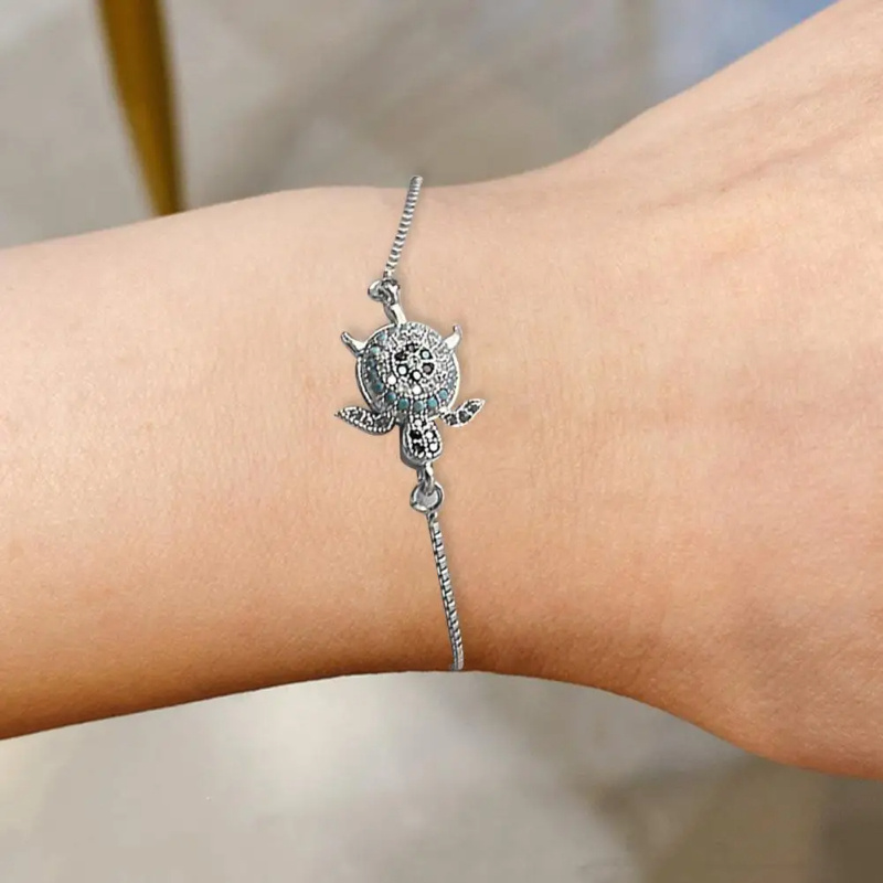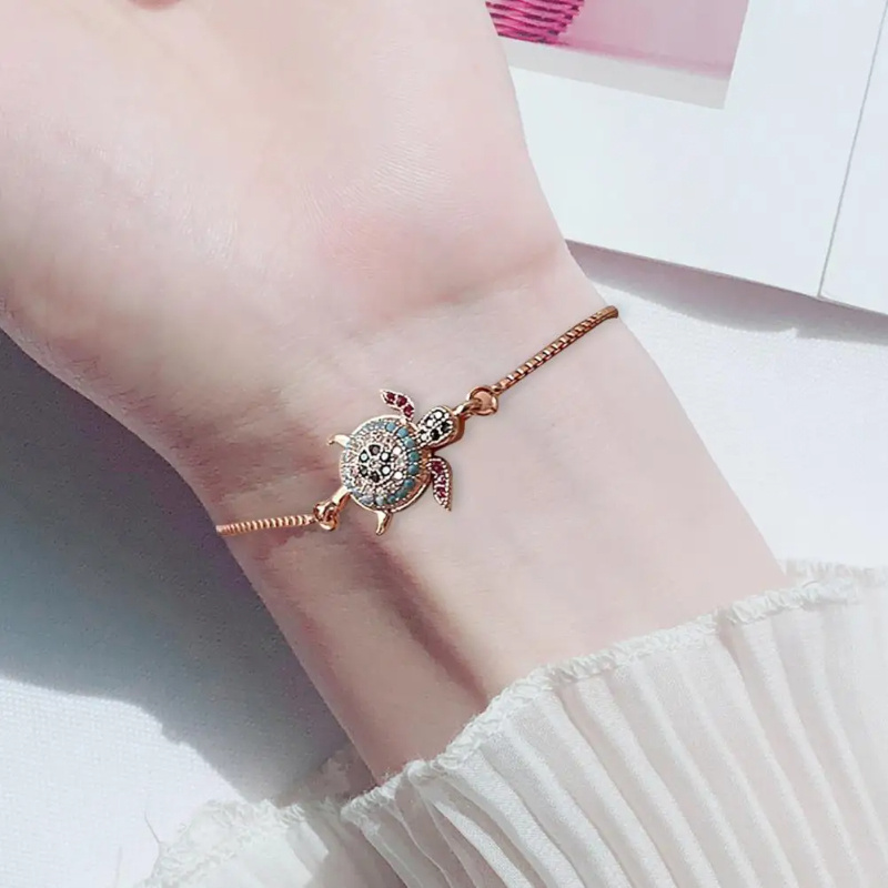 The Turtles Bracelet Adjustable Shiny Rhinestones Sparkling Geometric Women Girls Sea Turtle Bracelet is more than just a