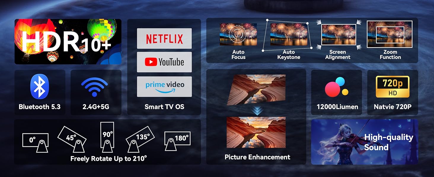 Enhanced Home Entertainment: Turn your bedroom, living room, or outdoor space into a mini-theater, offering a unique