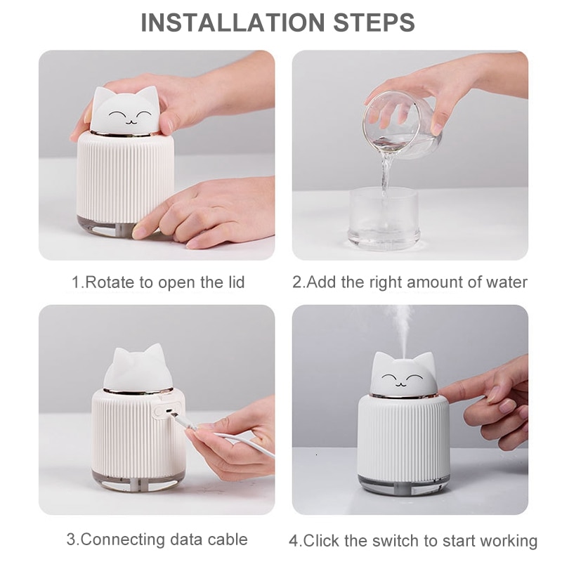 - Office Spaces: Improve the air quality and comfort of your workspace while adding a bit of fun and relaxation with this cute and functional humidifier.