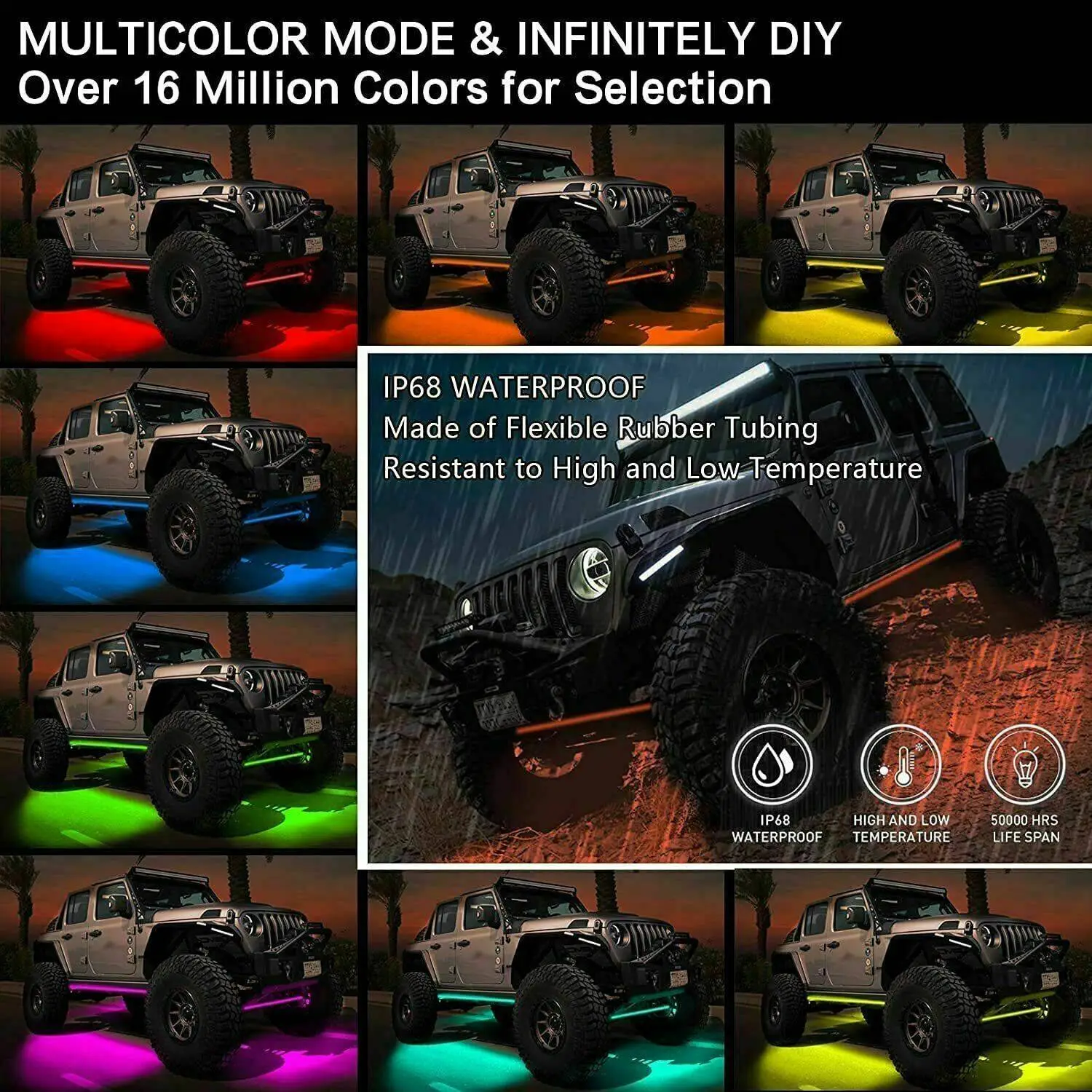 【Widely Application】 : Rock lights kits can be widely used in car, off road, truck, ATV, UTV, SUV, ATV motorcycle, boat and so on, also used for interior, dome, neon lights, yacht lights, ect.