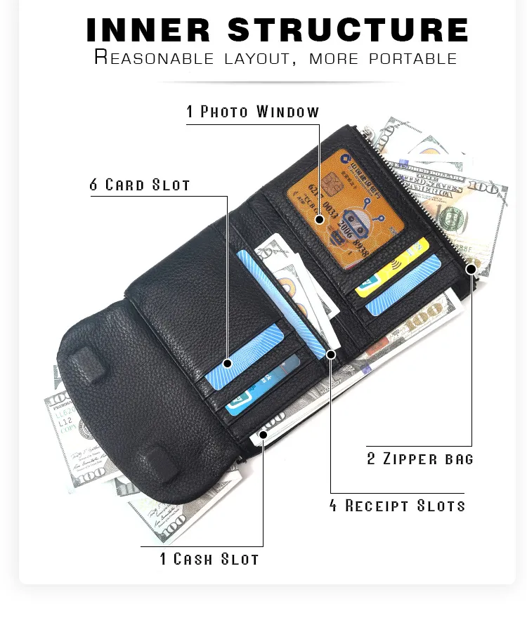 Minimalist & Practical Design: The wallet’s sleek, compact design offers enough storage without being bulky, making it perfect for daily use.
