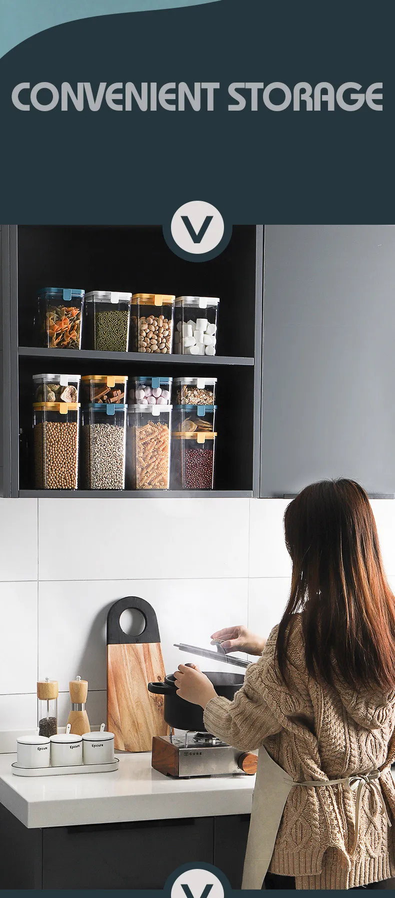 In addition to functionality, the universal storage jar features a clean and modern aesthetic that complements a wide range of kitchen styles. Whether displayed on open shelves or stored in cabinets, it adds a neat and organised appearance to your space.