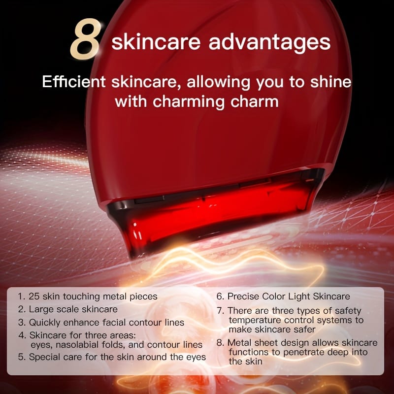 This newly upgraded tool integrates light therapy, V-face contouring, and heat to provide a comprehensive treatment for your skin. Here’s how each component works:
