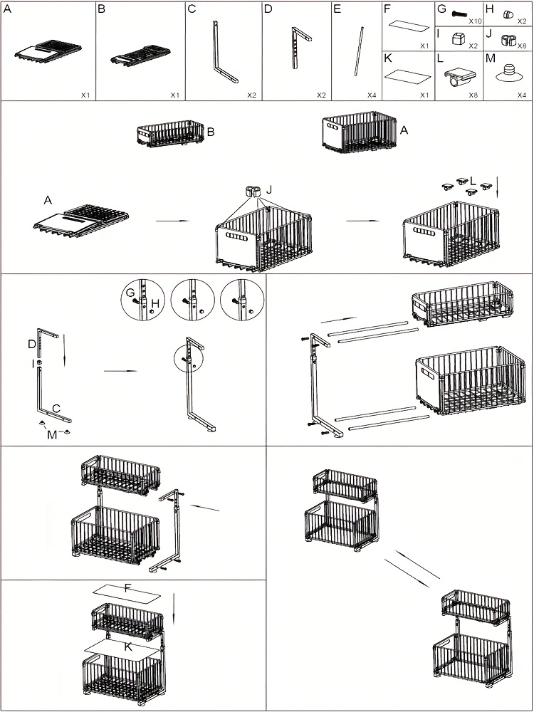 Assembly is fast and tool-free—simply connect the frames, slide the baskets into place, and put it under the cabinet.
