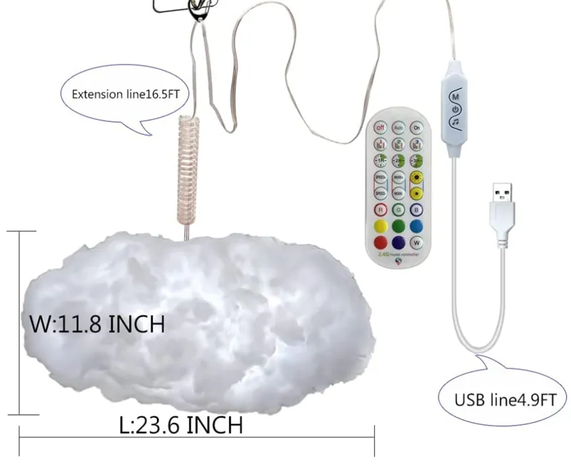 1. Package Included and Size: This Big Cotton Cloud lightning Light has a perfect size L:60-70CM.W:35-40CM