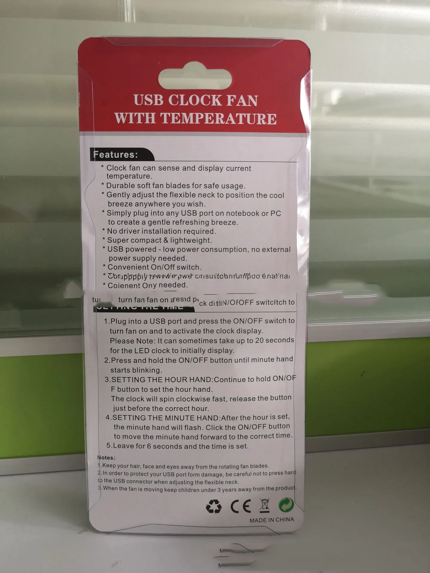 Description – USB LED Clock Fan
