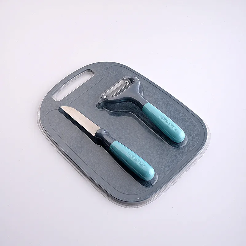 Descripción: Material: Plástico, metal. Atributos del producto: Afilado. Tamaño del paquete: 220 x 150 x 50 (1 mm). Información del producto: Material: PP + mango de silicona + hoja de acero inoxidable 3CR14 + cerámica. Descripción: 1. Estilo: azul de tres piezas. 2. Estilo: gris de tres piezas. 3. Estilo: azul de tres piezas. 4. Estilo: gris de tres piezas. 5. Estilo: gris de tres piezas. 6. Estilo: gris de tres piezas. 7. Estilo: azul de cuatro piezas. 8. Estilo: azul de tres piezas. Tabla de cortar de cuatro piezas gris