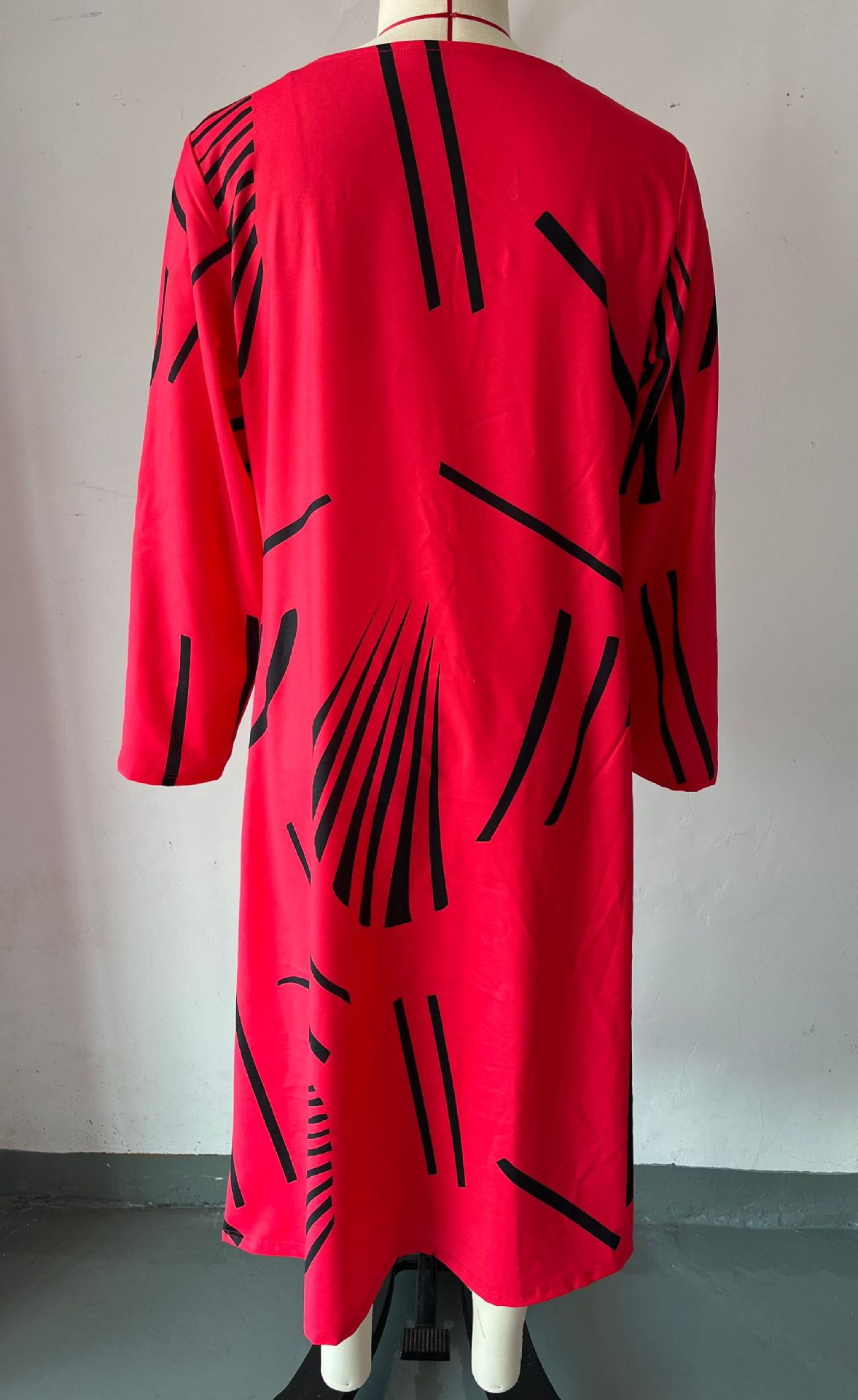 Comfort and Fit The Fashion Printed V Neck Long Sleeve Dress is designed with a relaxed fit, making it easy to wear for extended periods. The soft fabric drapes beautifully over the body, providing a comfortable and flattering silhouette. The loose, straight design ensures that the dress is not too tight or restrictive, allowing you to move freely and confidently. The V-neckline adds a touch of elegance, making this dress suitable for both casual and more formal occasions.