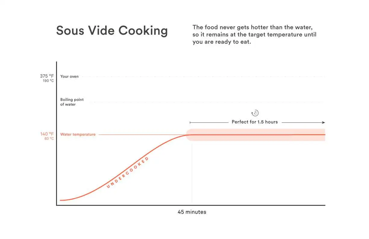Now check out this sous-vide graph. As you can see, your food can remain in a precisely heated pot of water for more than an hour, and still