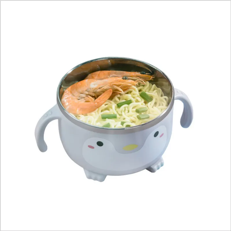 Versatilidad de la vajilla infantil de acero inoxidable 304: tazón con asa y diseño de pingüino