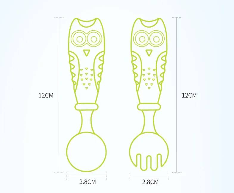 Textura suave, puede proteger mejor a los bebés Encías y dientes delicados. Fácil de agarrar y limpiar. Especificaciones: Nombre: Cuchara de codo de búho. Edad: más de 4 meses. Tamaño: cuchara, tenedor: 12,0 x 2,8 x 1,5 cm. Caja: 15,2 x 4,0 x 7,4 cm. Color: morado, rosa, azul. Especificaciones: 1 juego. Material: polipropileno, elastómero termoplástico. Resistencia a la temperatura: 100 °C. Embalaje: Contenido: