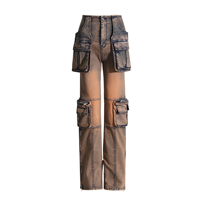Vaqueros Hamonica con múltiples bolsillos y patchwork de moda casual