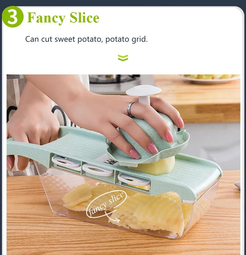 The Vegetable Cutter Slicer is a versatile kitchen tool designed to simplify food preparation. Made with durable materials and sharp stainless steel blades, it allows you to slice, chop, and dice vegetables quickly and evenly.