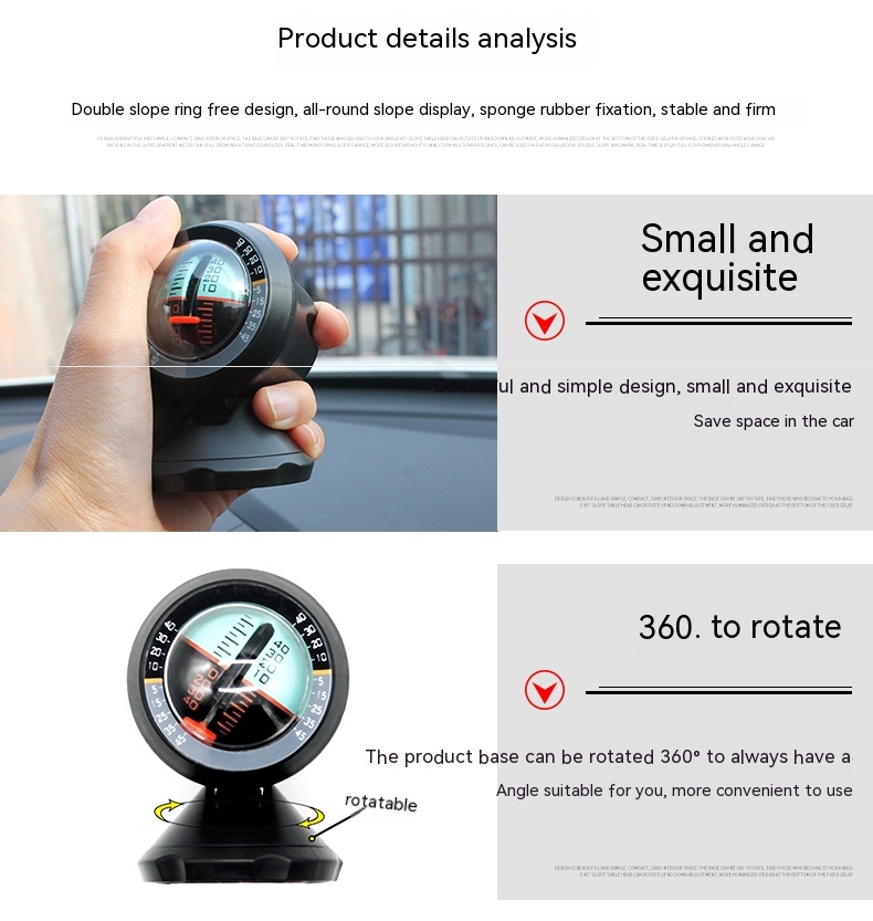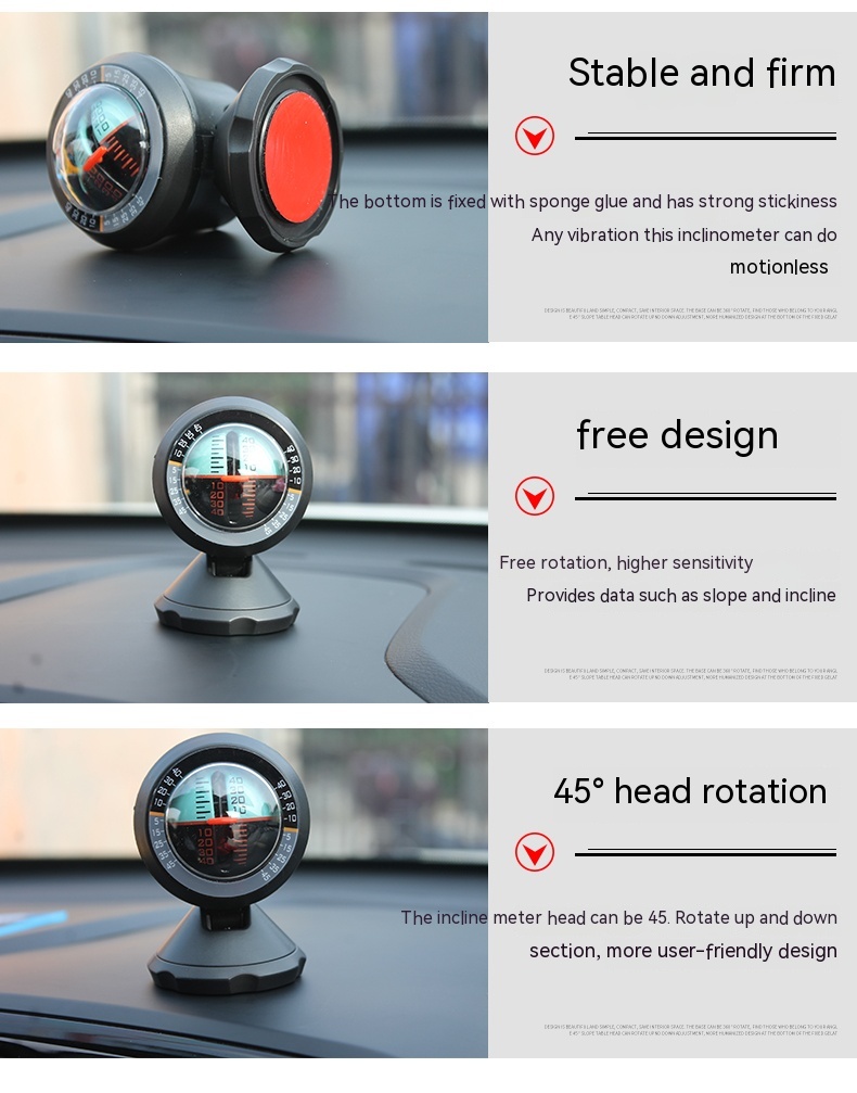 With easy-to-read digital or analog displays, this compact and reliable device continuously senses the slope and pitch of your vehicle, helping you avoid risky situations like tipping or rolling. A must-have for adventure enthusiasts, truck drivers, and off-road explorers, the Vehicle Mounted Self-Sensing Slope Meter ensures you're always aware of your vehicle’s angle, no matter where the journey takes you.
