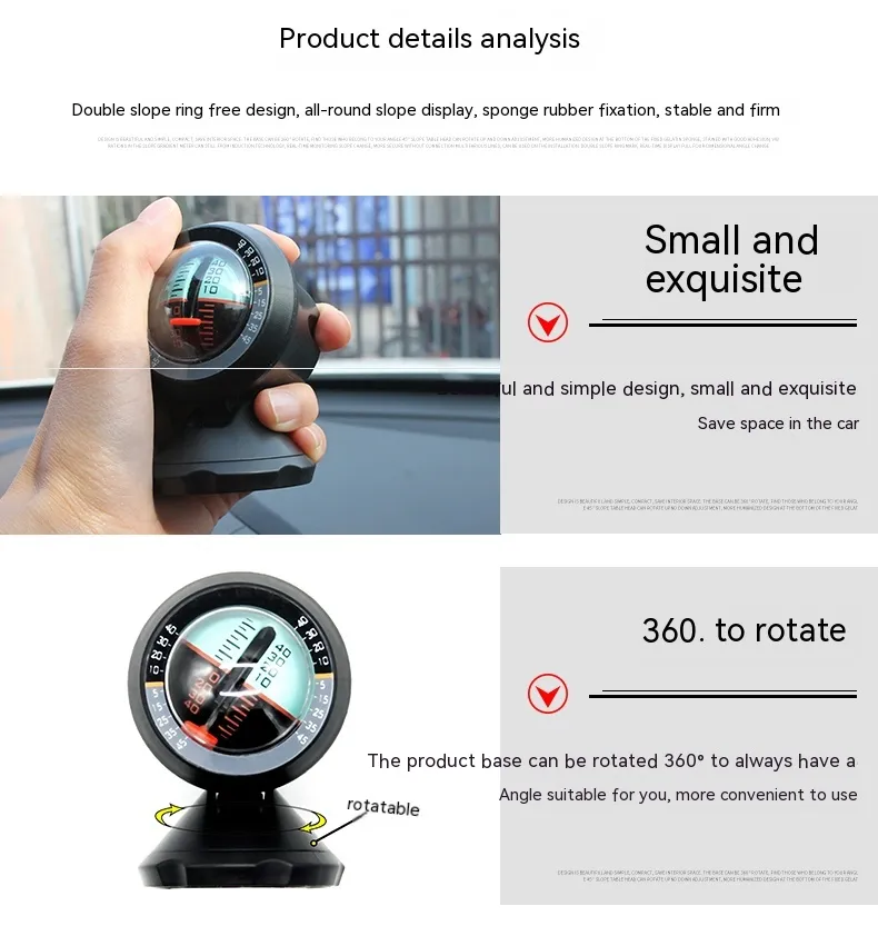 The vehicle mounted slope meter adopts a free type rotation, which has high sensitivity and provides slope and inclination. Understand the