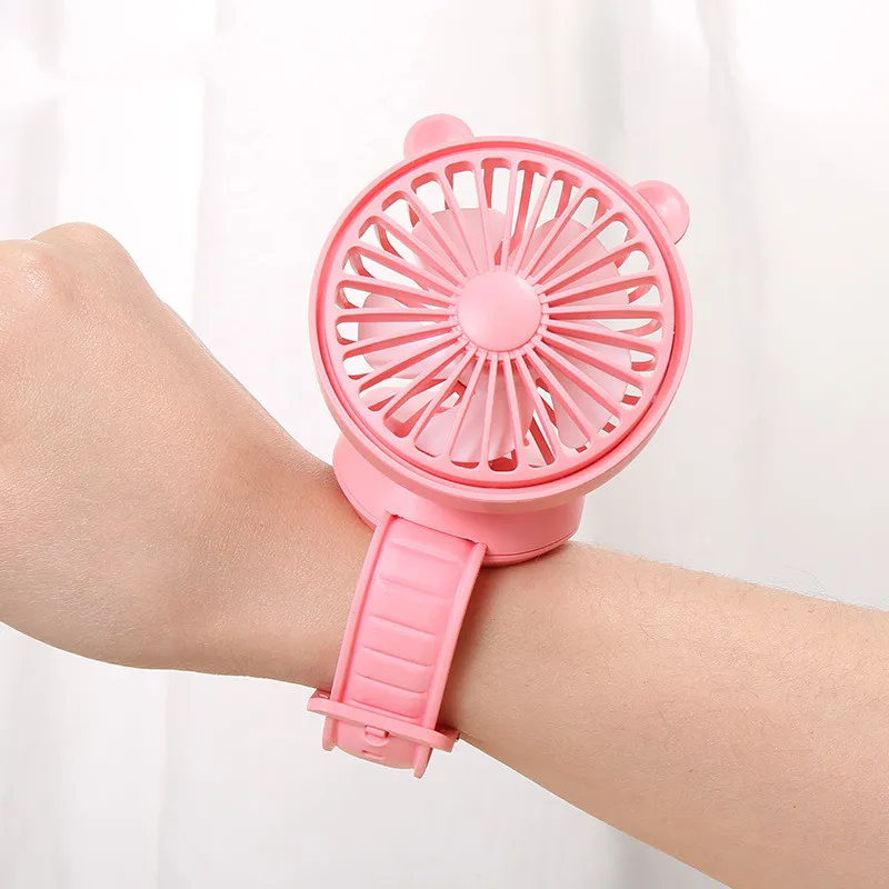 Ventilador de reloj recargable para estudiantes, ventilador de escritorio con forma de oso, mini ventilador de mano