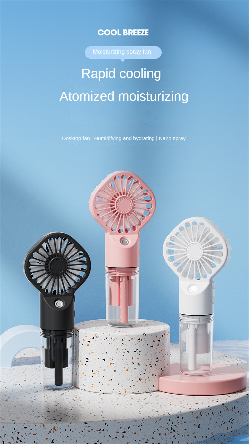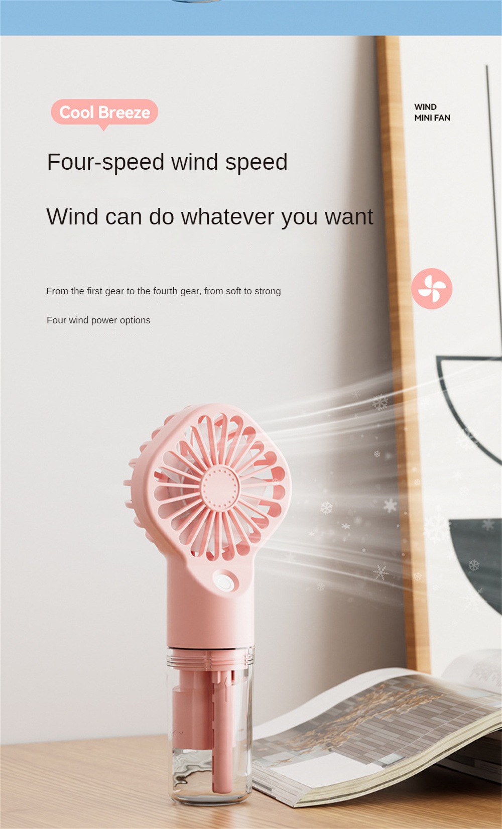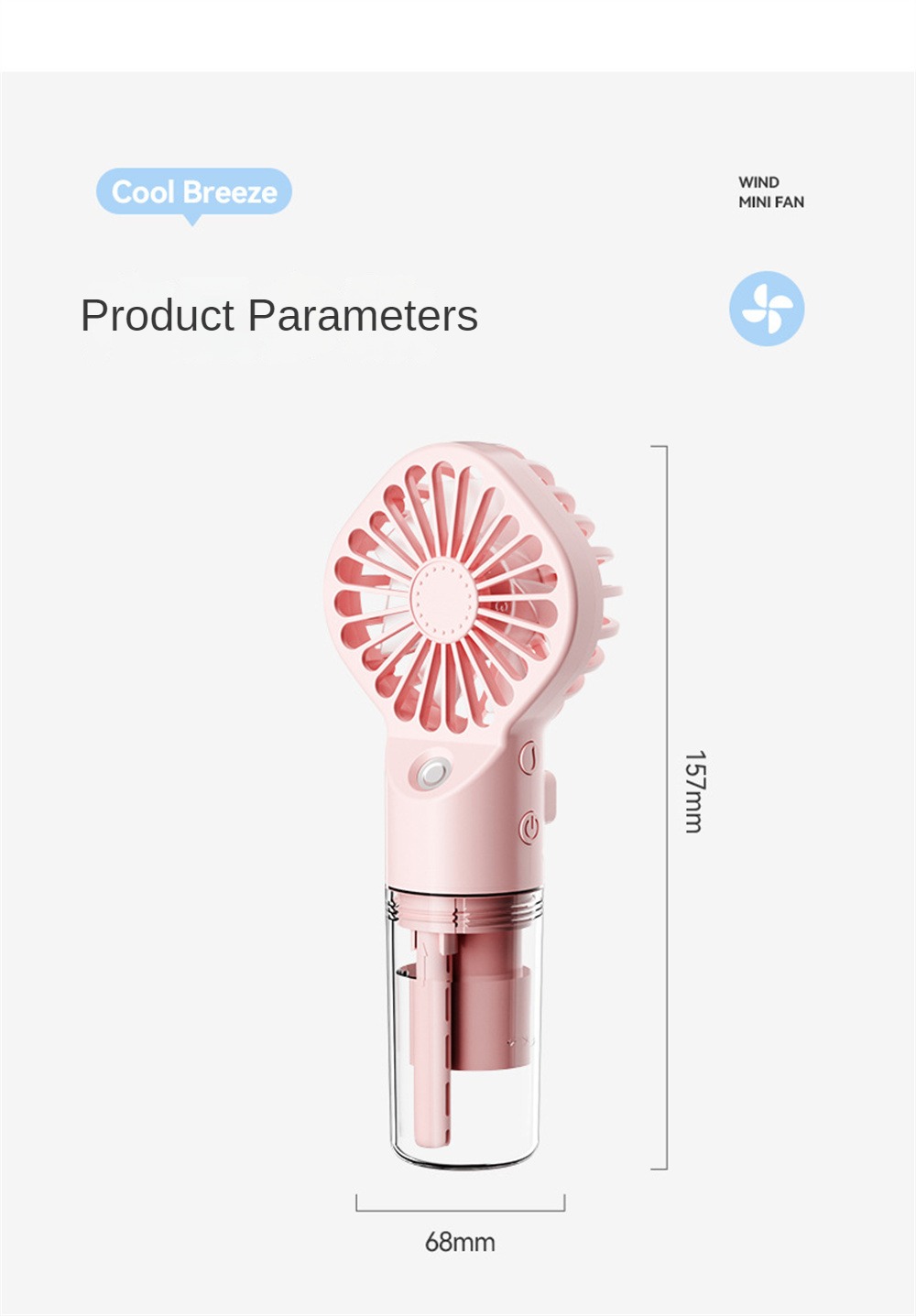 Gran potencia Rociador: Equipado con una potente función de rociado, este ventilador emite una fina niebla que refresca y refresca al instante. Los ajustes de niebla te permiten personalizar el nivel de humedad, garantizando una comodidad óptima adaptada a tus necesidades. Carga USB: La comodidad está al alcance de tu mano con la función de carga USB. Simplemente conecta el ventilador a cualquier puerto USB, ya sea tu portátil, batería externa o adaptador de pared, y disfruta de horas de uso continuo. Su diseño portátil te permite llevarlo a cualquier lugar, desde tu escritorio hasta la playa. Hielo y refrescante: Diseñado para brindar una brisa helada, este ventilador cuenta con un flujo de aire de alta velocidad que te refresca eficazmente. La combinación de un potente flujo de aire y la nebulización crea un efecto refrescante, perfecto para los calurosos días de verano.