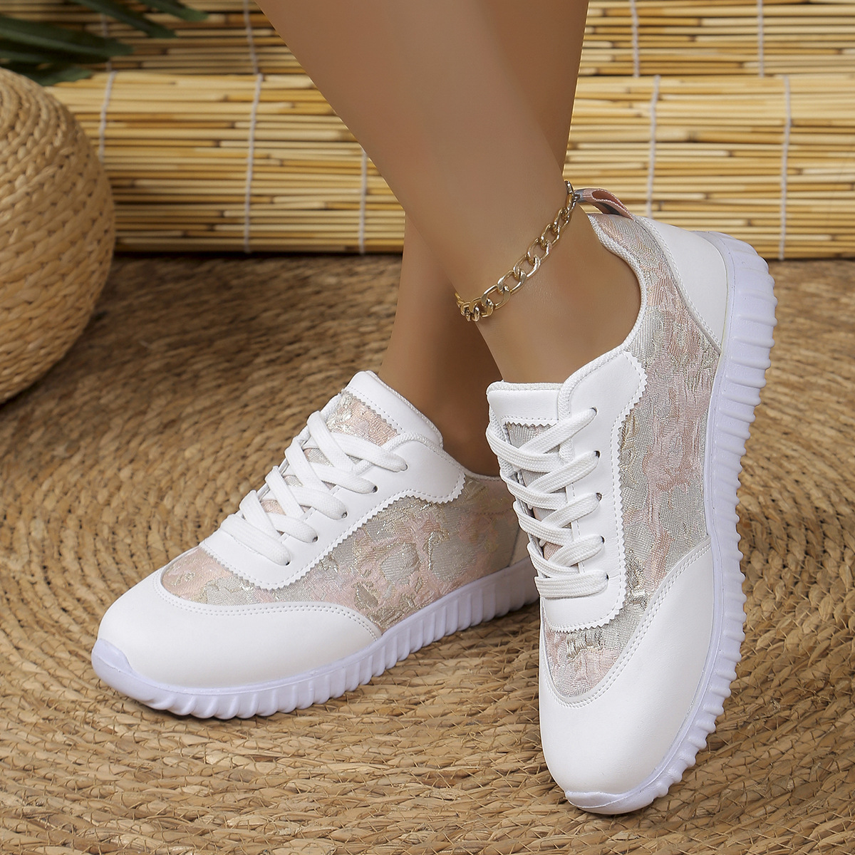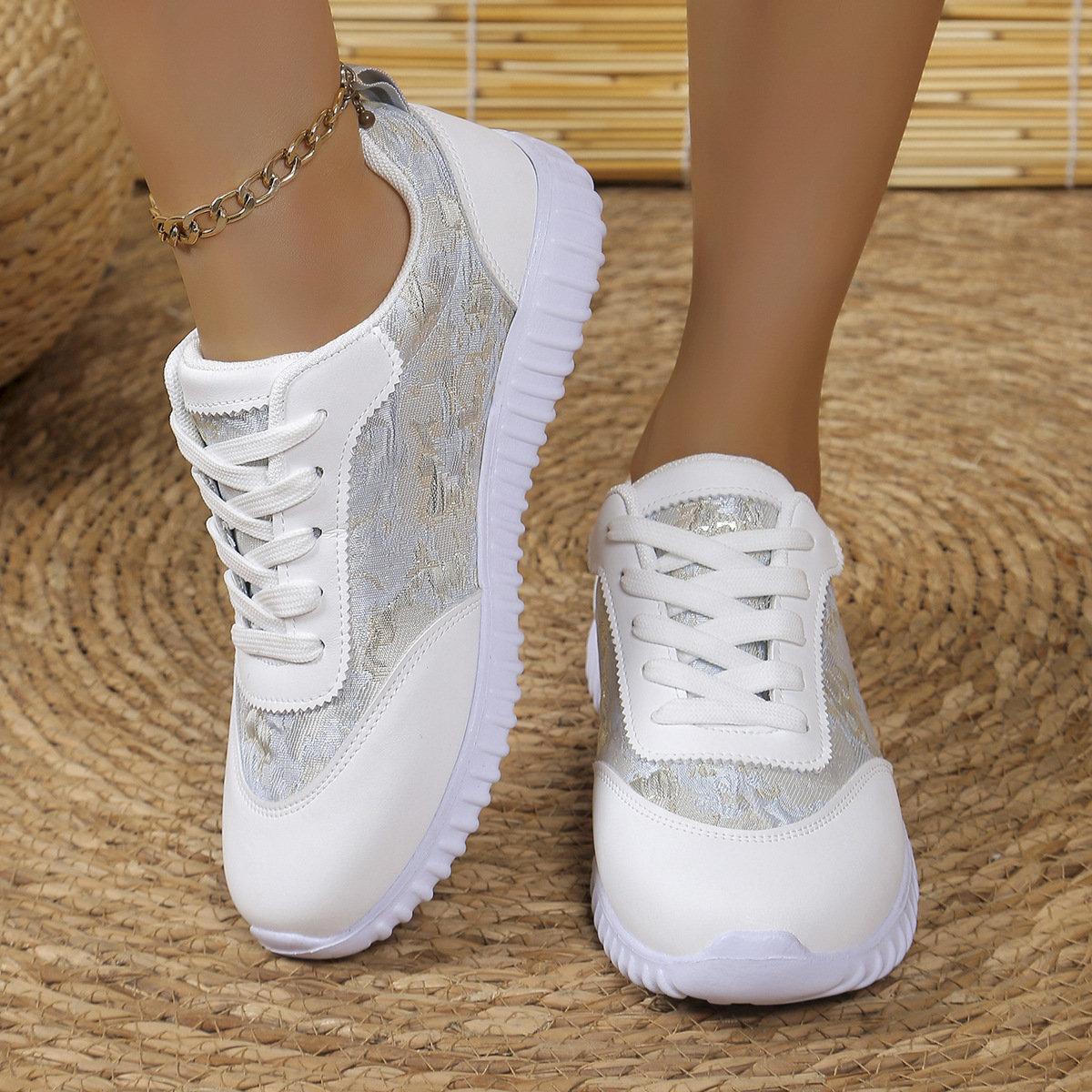 Versatile Lace-up Flat Shoes Casual Lightweight Thick-soled Running Sports Shoes Low-top Breathable Sneakers For Women