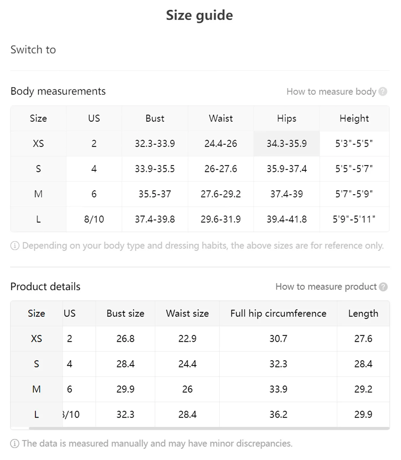 Nota: 1. Las tallas asiáticas son 1 o 2 tallas más pequeñas que las europeas y americanas. Elige la talla más grande si tu talla está entre dos tallas. Puede haber una diferencia de 2-3 cm debido a la medición manual.