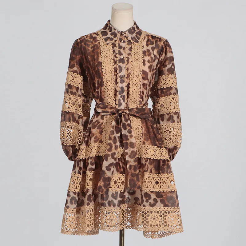 Confeccionado con tela ligera de alta calidad, el Vestido de Manga Larga con Estampado de Leopardo Hueco garantiza comodidad a la vez que mantiene un look chic y vanguardista. El estampado de leopardo irradia confianza y añade un toque atrevido a tu armario, mientras que las mangas largas equilibran las secciones caladas reveladoras, haciéndolo perfecto para las noches más frescas o para usar durante todo el año. Los detalles calados están estratégicamente ubicados para acentuar tu figura sin sacrificar el estilo, brindándote un toque seguro y moderno que sin duda llamará la atención. Combínalo con tacones y accesorios llamativos para completar el look. Este vestido está diseñado para mujeres que no temen arriesgarse con su estilo. El vestido de manga larga con estampado de leopardo calado combina a la perfección el clásico estampado animal con elementos de diseño modernos para un efecto llamativo. Ya sea que asistas a una fiesta, una cita o un evento, este vestido te garantizará una impresión duradera. El ajuste elegante, el estampado atrevido y los detalles huecos únicos se combinan para crear una pieza única que es a la vez atrevida y sofisticada, lo que garantiza que destaques dondequiera que vayas.
