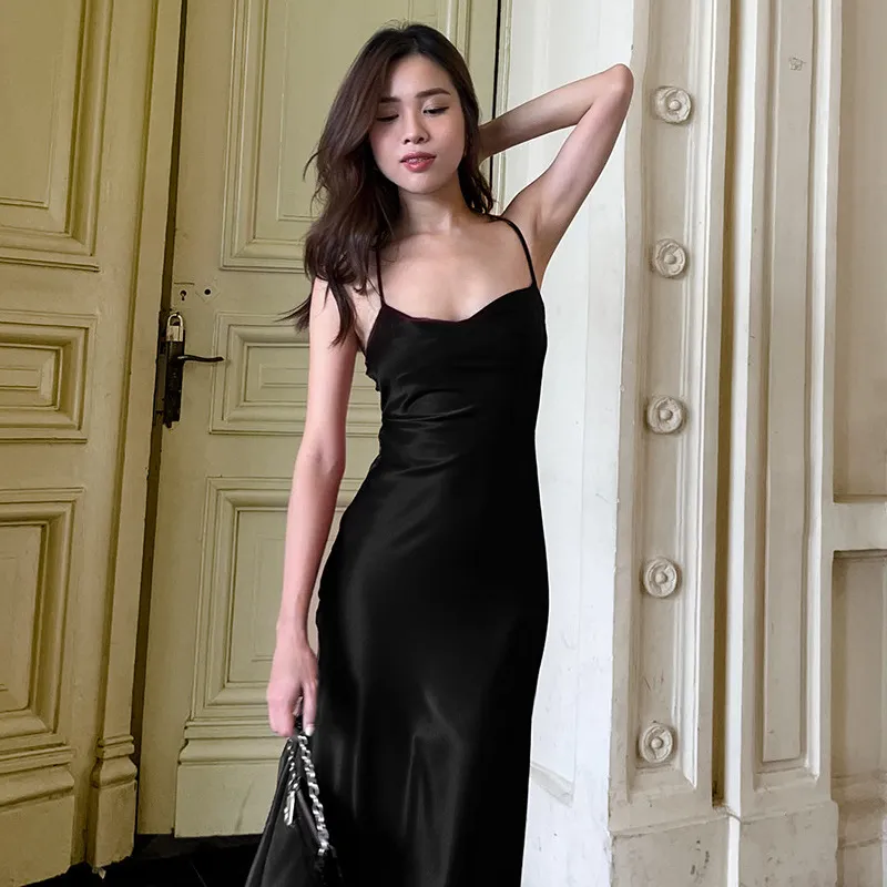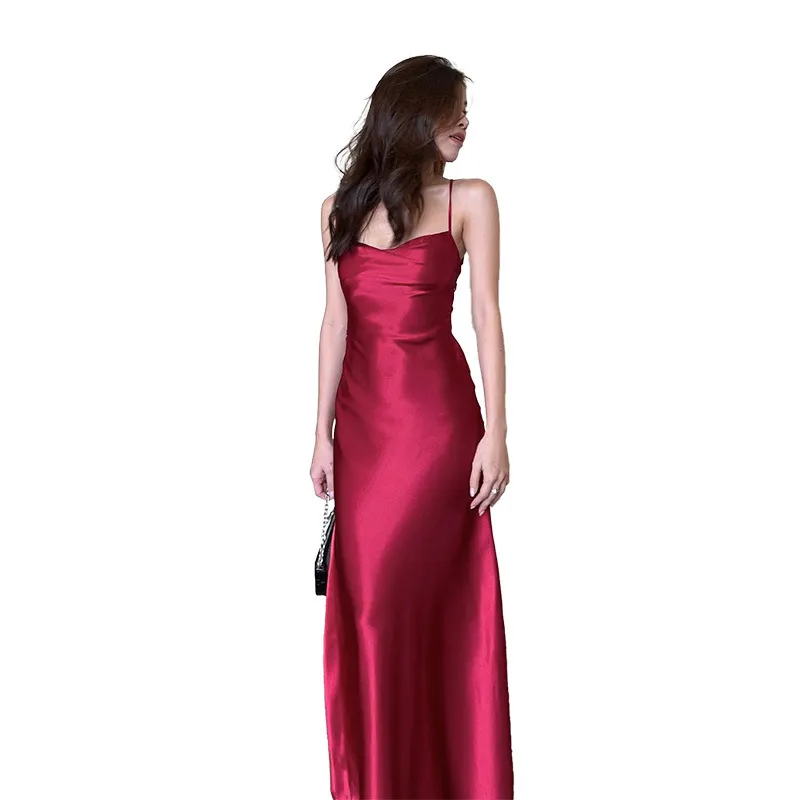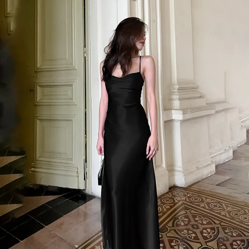 Vestido de satén con tirantes y espalda descubierta para mujer