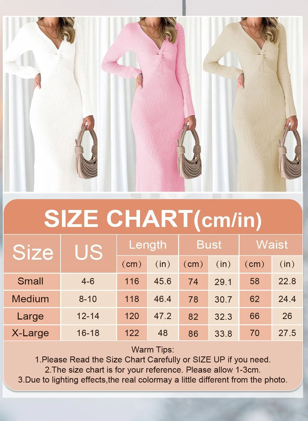 - Estilo: Vestido de manga larga / Vestido ajustado para mujer / Vestido de punto acanalado / Vestido de suéter para mujer / Vestido con cuello en V / Vestidos midi ajustados y sexys.