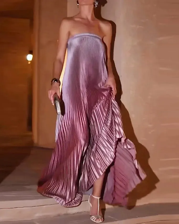 Realza tu guardarropa con nuestro vestido plisado de sirena con top de tubo sin mangas, diseñado para quienes buscan elegancia y estilo. Este impresionante vestido presenta una favorecedora silueta de top de tubo que se ajusta a tu figura, brindándote comodidad y soporte. El corte sirena realza tus curvas, haciéndolo perfecto para ocasiones especiales como bodas, fiestas o una salida nocturna. Elaborado con materiales de alta calidad, el diseño plisado aporta textura y movimiento, asegurando que dejes una impresión duradera dondequiera que vayas.