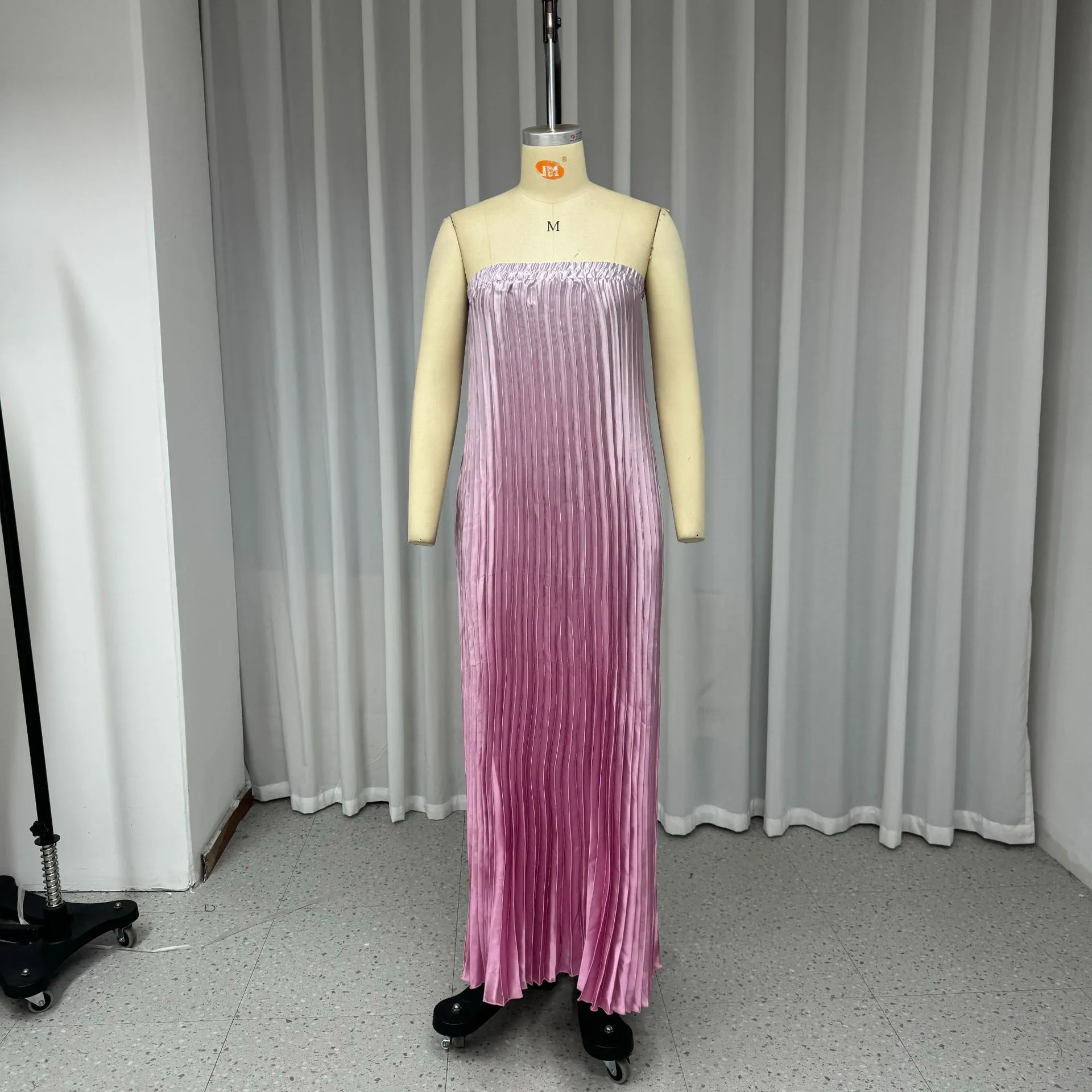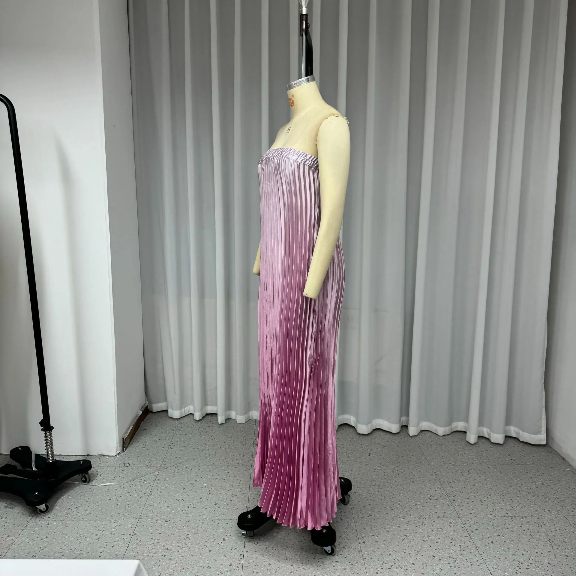 Vestido plisado de sirena con top de tubo sin mangas de moda