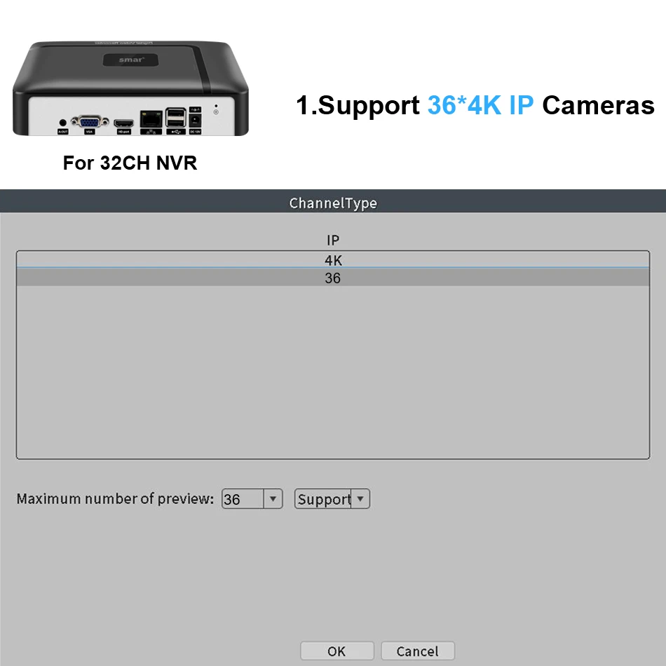 1* 9CH/ 10CH/16CH/32CH/36CH H.265 NVR