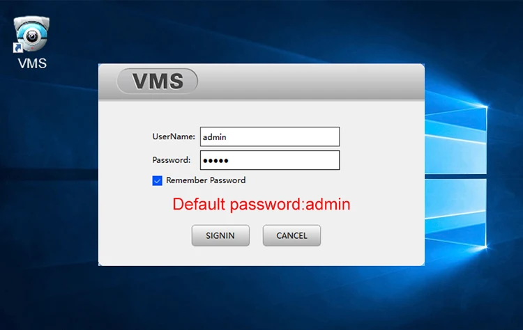 2. Please install VMS software on your computer, then login VMS Software, Username: admin, Password:admin