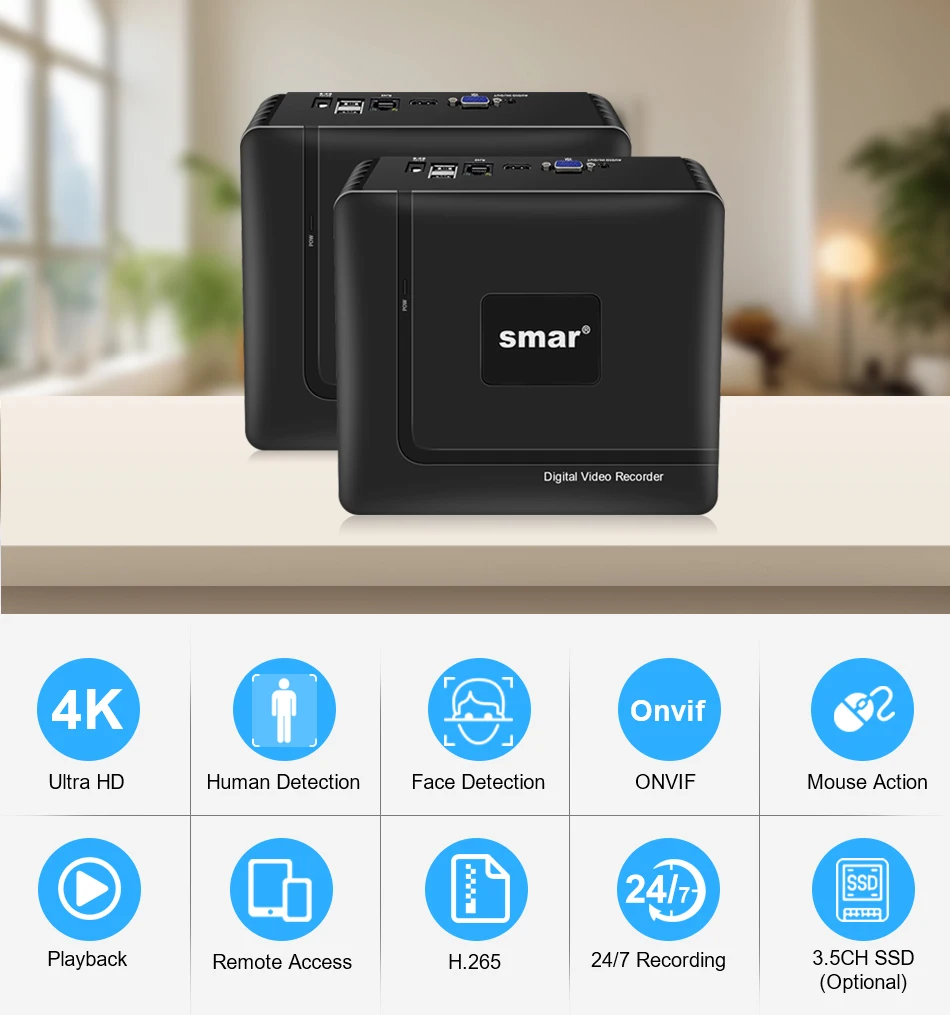 If you have multiple IP cameras or if you want 24/7 recording, smar Onvif NVR is your best choice. The NVR works perfectly and efficiently with the cameras for round-the-clock monitoring and recording for your home & business security and surveillance.