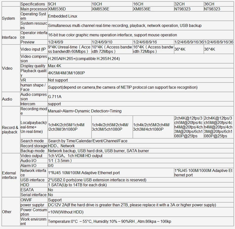Video Input: 9/10/16/32/36 CHANNEL IP