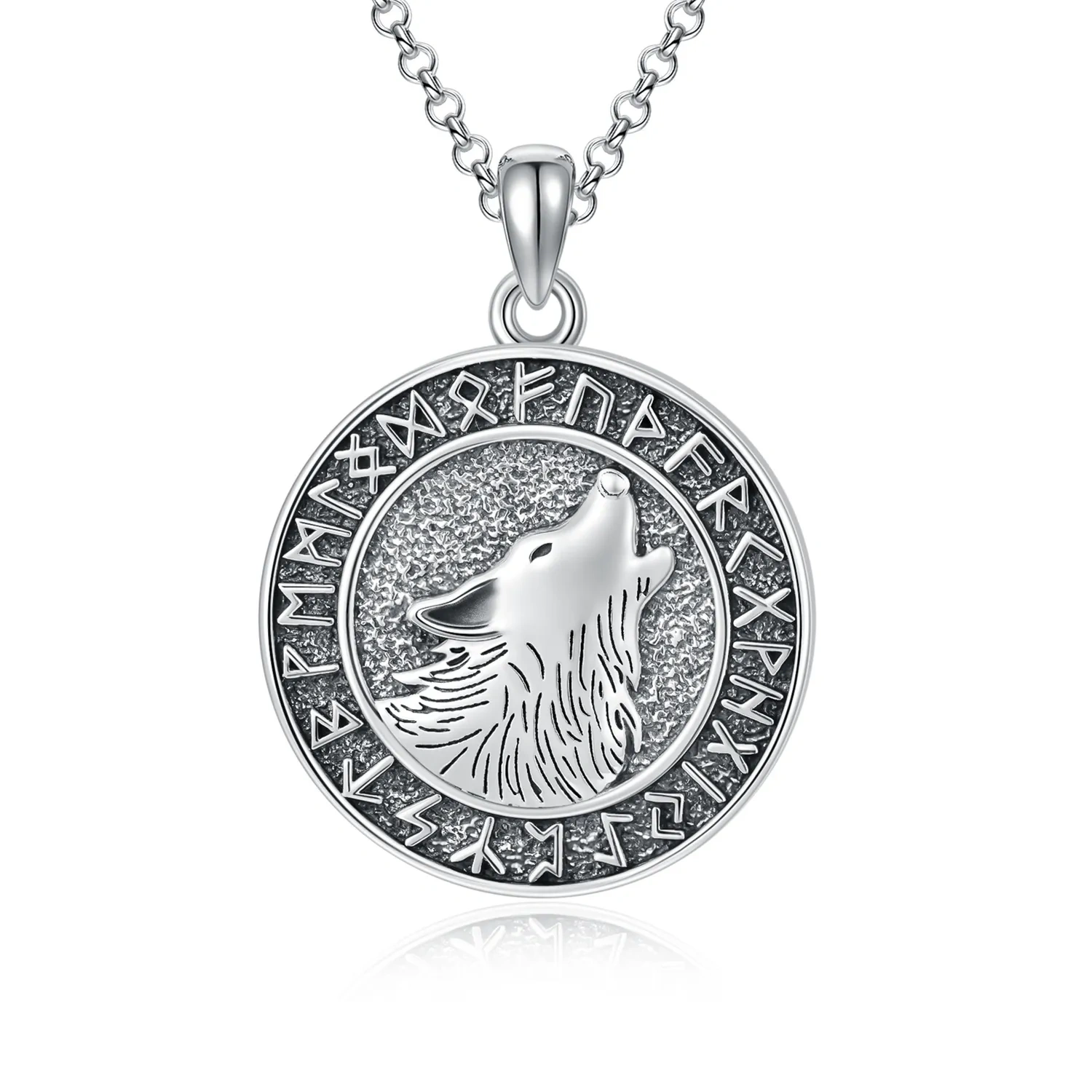 Norse Viking Wolf Necklace Inspiration: this ancient Viking medallion features Fenrir, the most infamous wolf in Norse mythology, in the center, encircled by the Elder Futhark Runes, as an amazing art, which can impress you and your lover and your friends with the pattern on it.Specification: