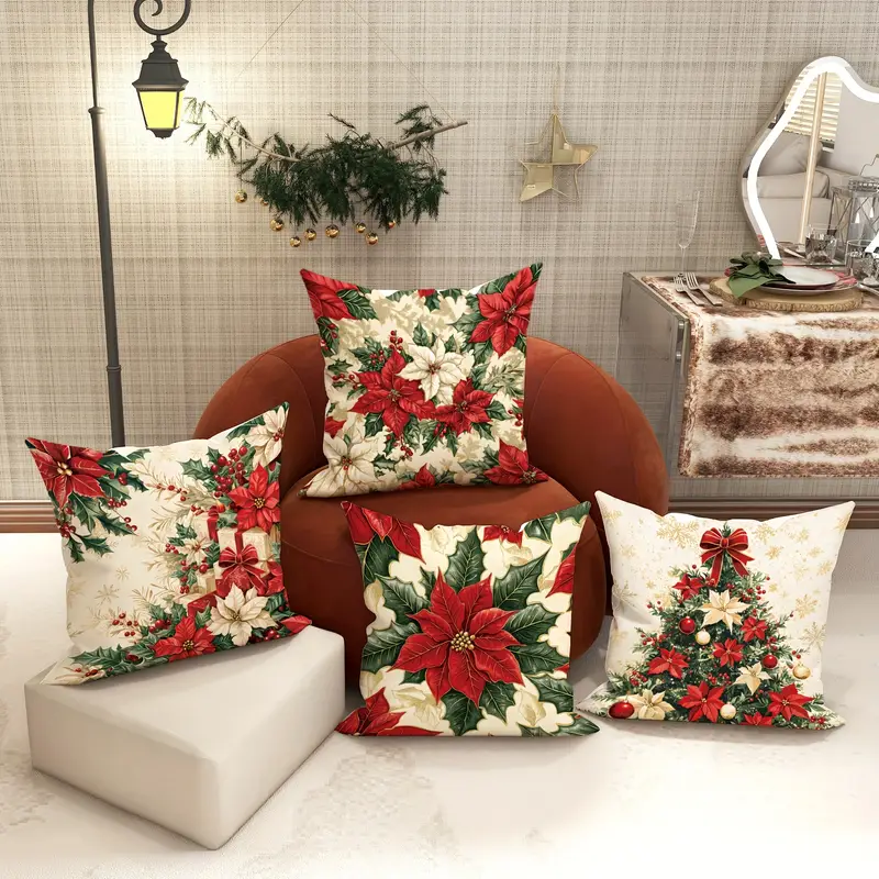 Whether you’re preparing for Christmas gatherings, adding holiday cheer to your home, or looking for thoughtful gifts, this set of 4 pillow covers is a versatile and practical choice. With their elegant design and soft texture, they can easily complement various styles of home decor, from modern to traditional. The timeless Christmas motifs make them a great investment that can be reused year after year to bring the holiday spirit into your home.