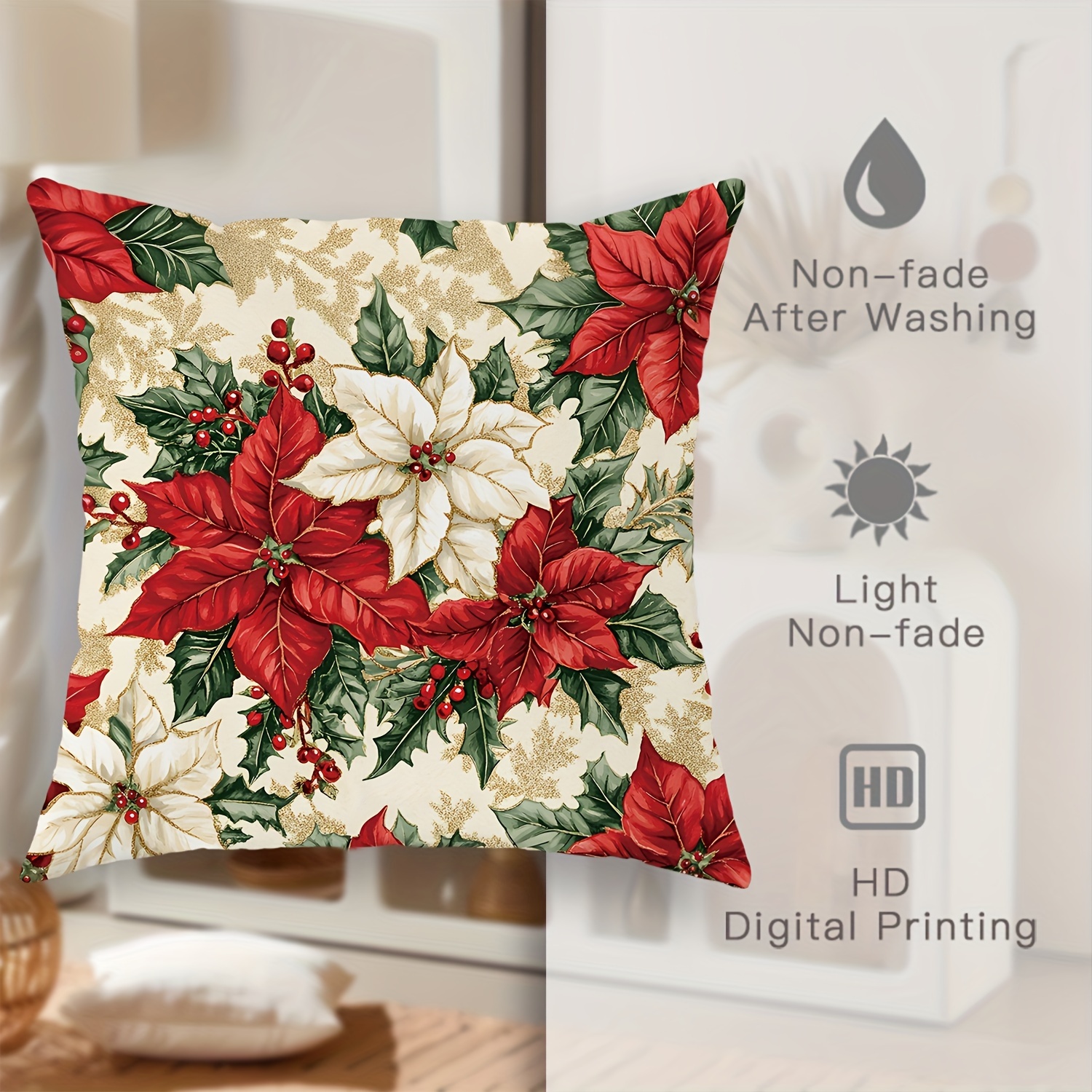 Each pillow cover measures 45.72x45.72 cm, making them ideal for standard throw pillows. The intricate floral and tree patterns evoke a timeless Christmas charm, blending classic holiday motifs with modern style. These pillow covers are designed with hidden zippers, making them easy to remove and replace without detracting from their seamless appearance. The zippers ensure that your pillow covers stay securely in place while adding a sleek finish to the overall look.