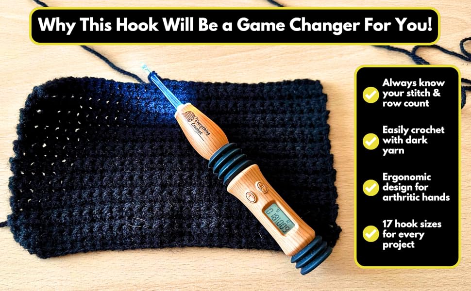 - LIGHT UP HOOKS TO SEE STITCHES CLEARLY - Now it’s easy to crochet even with the darkest yarn. No more guessing or mistakes. 2 brightness modes suit various lighting conditions. Easily crochet at night, in front of a TV, when hubby is sleeping, etc.