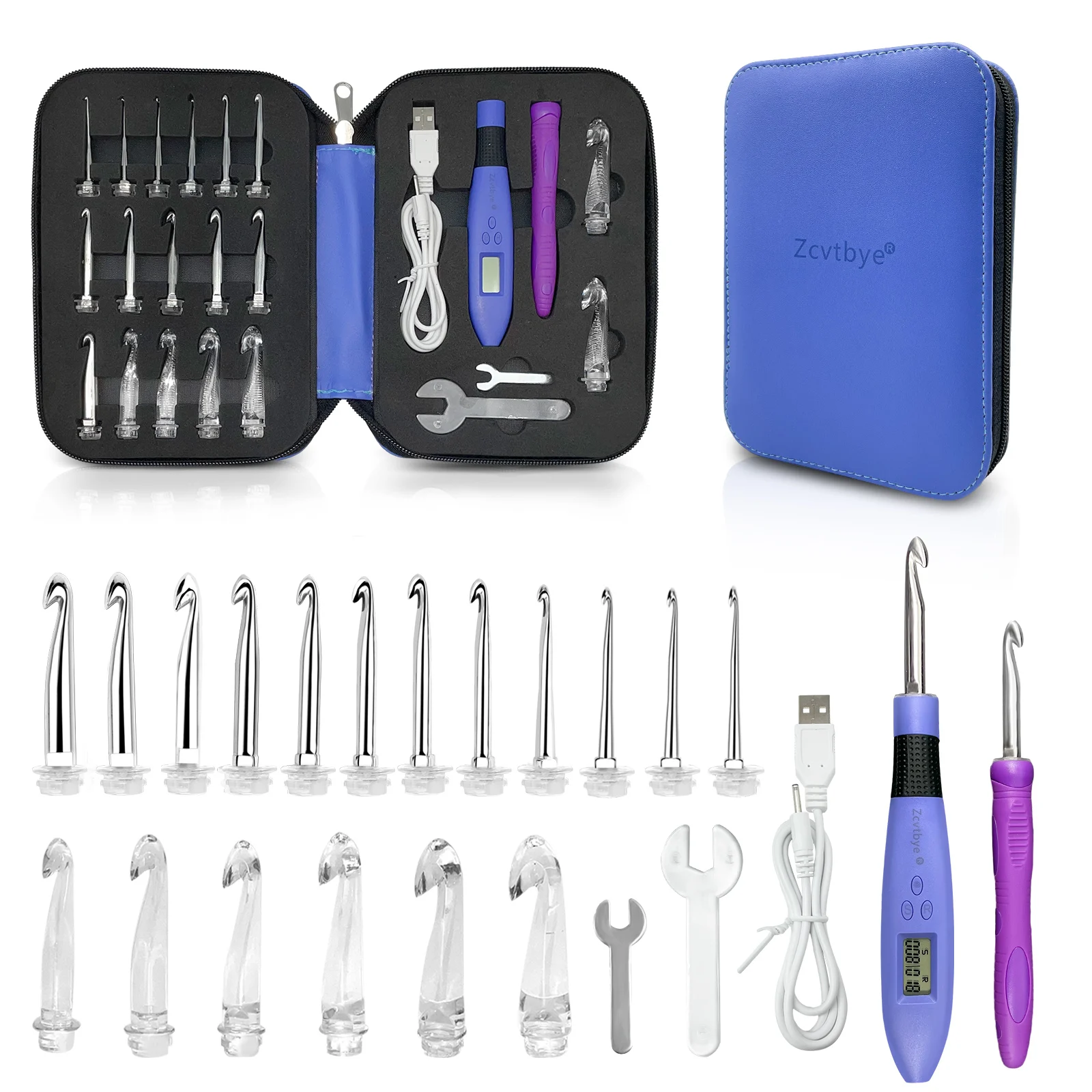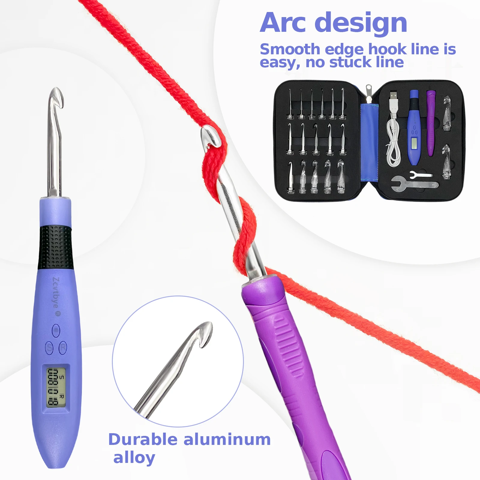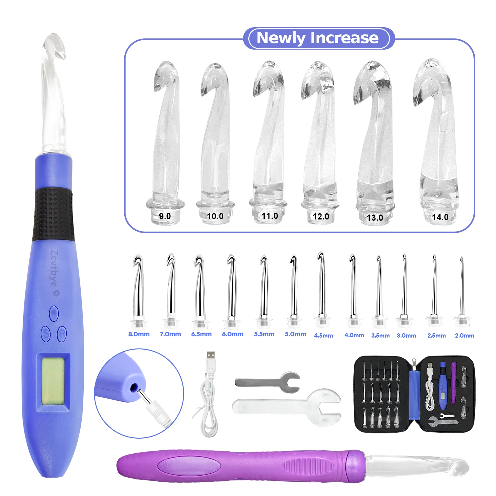 -Rechargeable Crochet Hooks,USB Fast Charge.Battery lasts 7-9 hours after 15 minutes fully charged.USB charge can be done by wall adapter, power bank or computer etc.