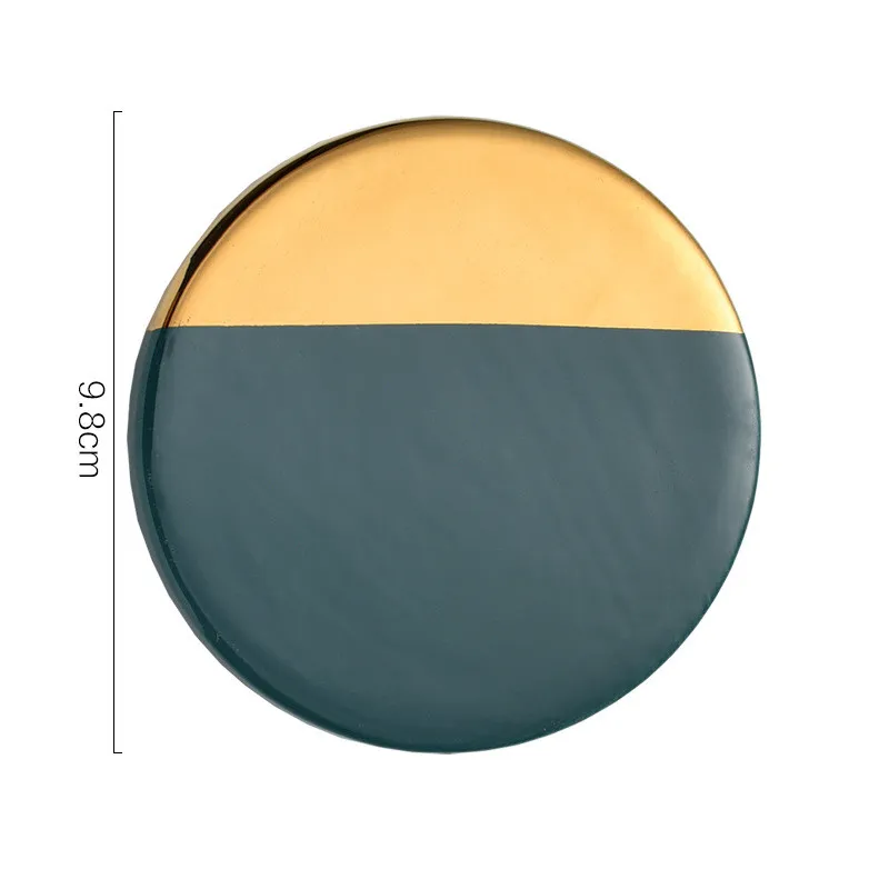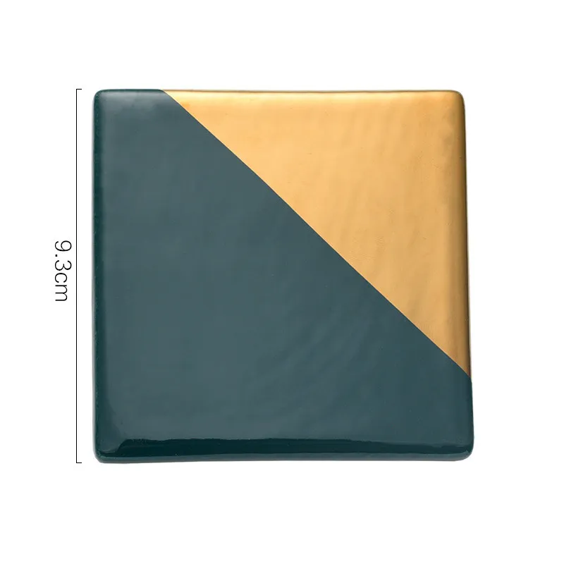 trim creates a stunning contrast against the green glaze, giving the coaster a refined, high-end appearance. The gilding not only enhances
