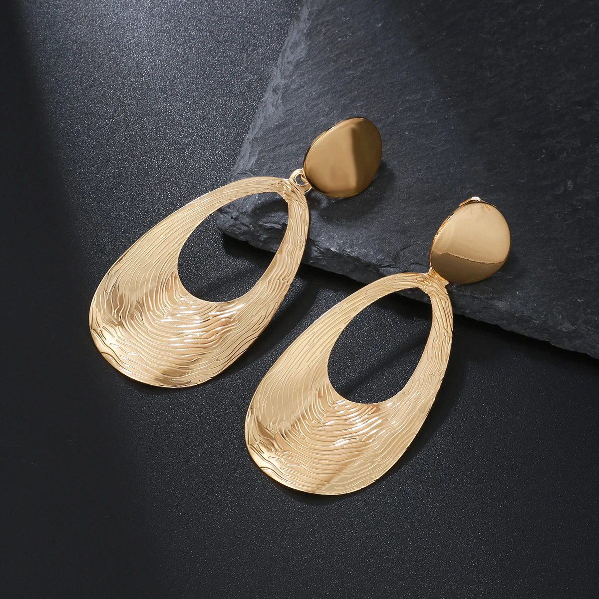 Vintage Metal Water-Drop Clip-on Earrings - Geometric Statement Big Earrings for Non-Pierced Ears