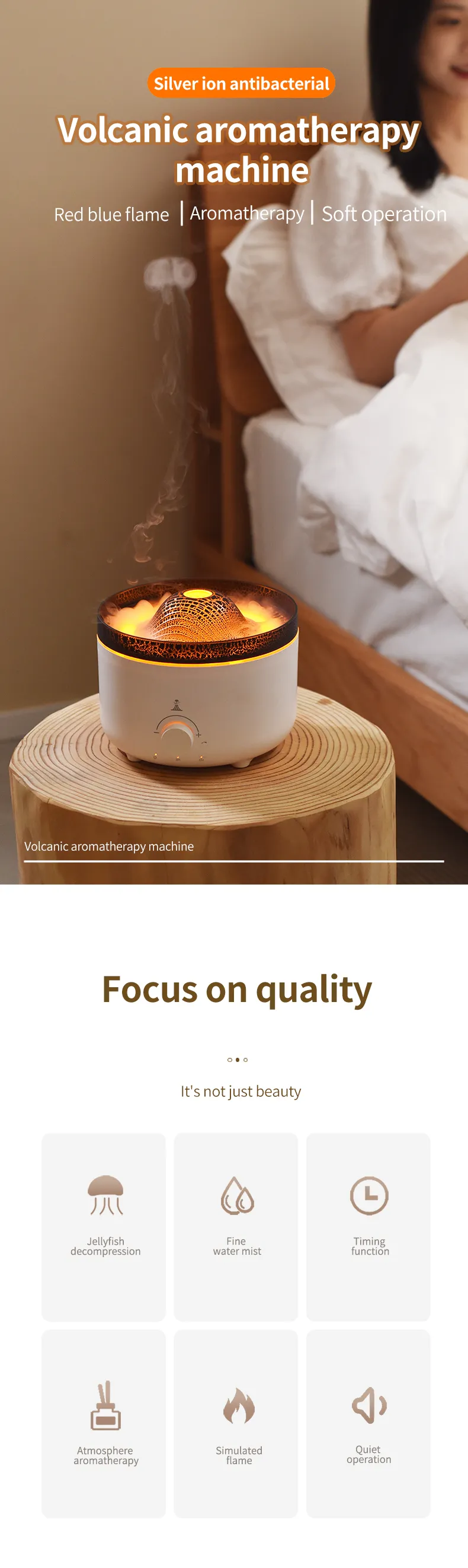 2. Aroma diffuser——Can be added essential oil,spread pleasing fragrance,relax body and mind.