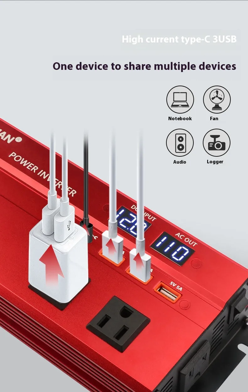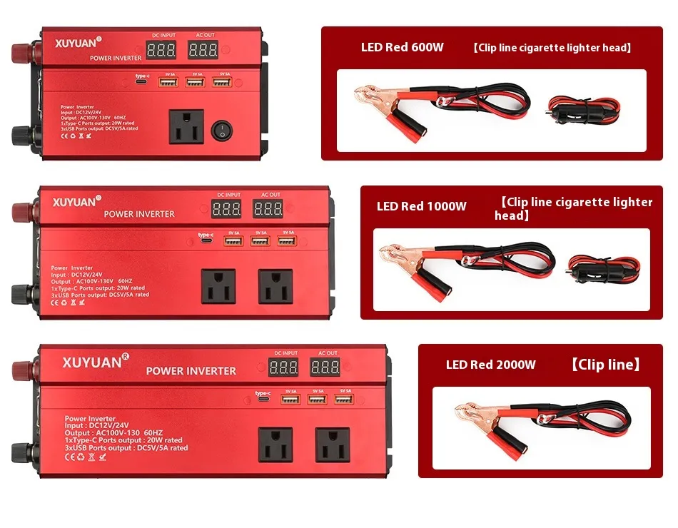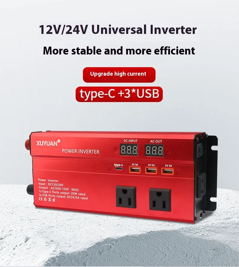 Specification: 12V/24V to 110V/2000W American standard black