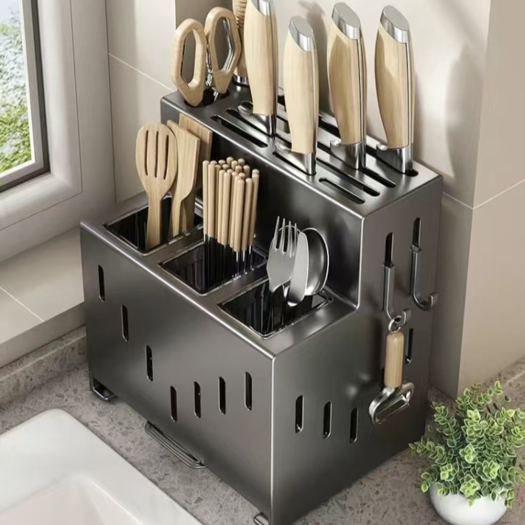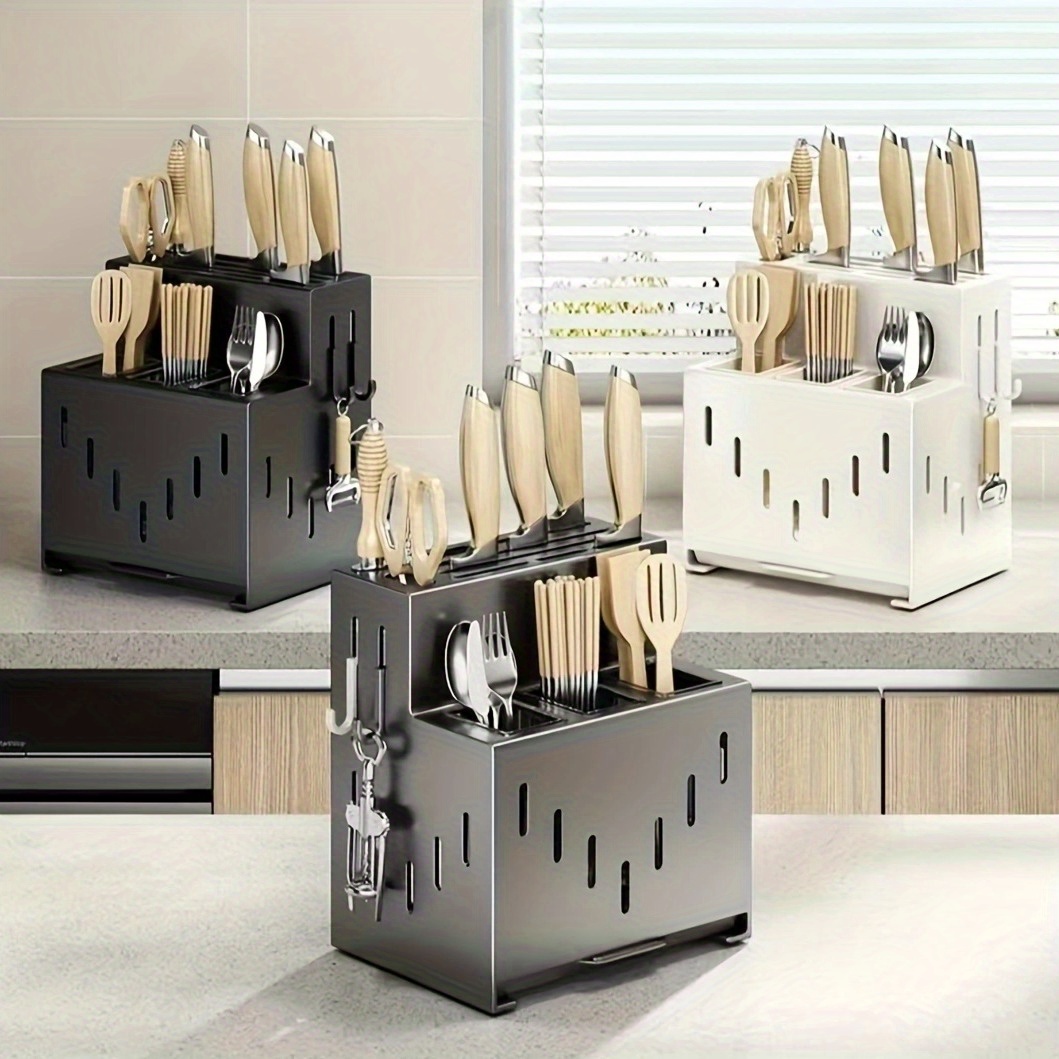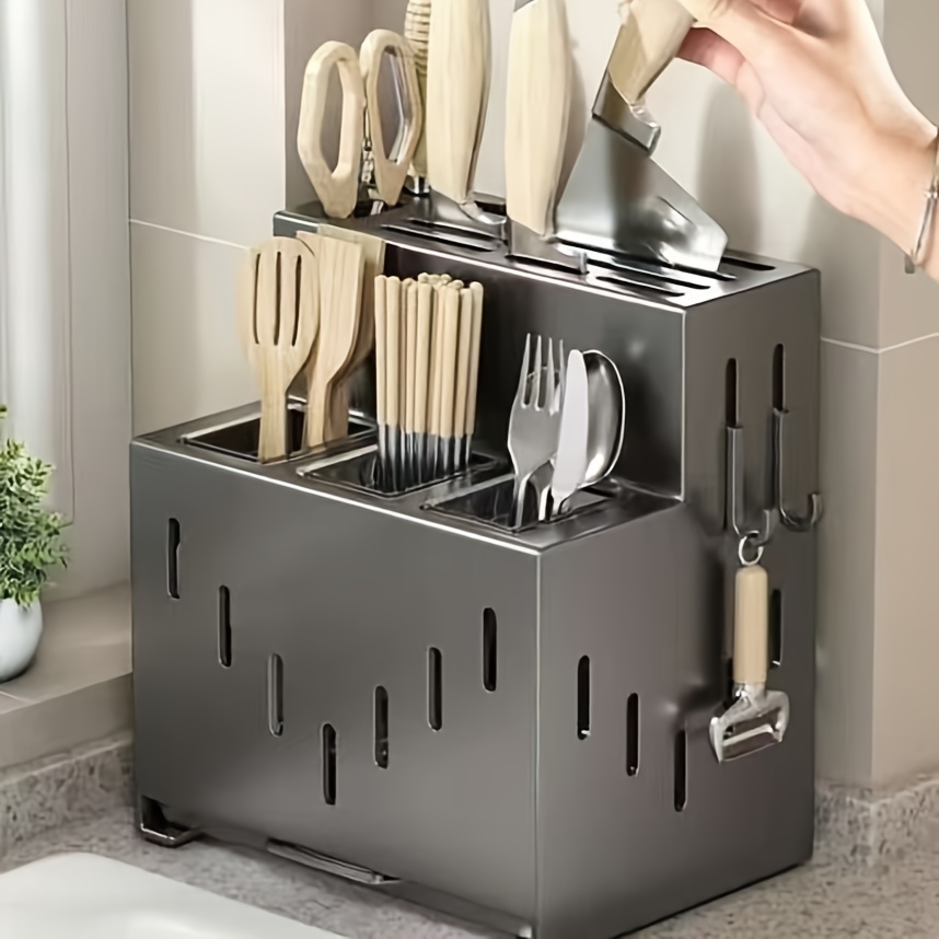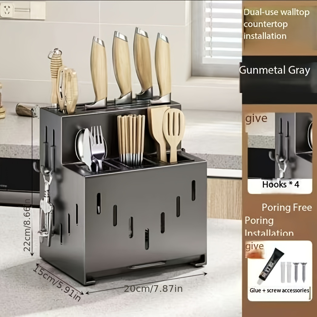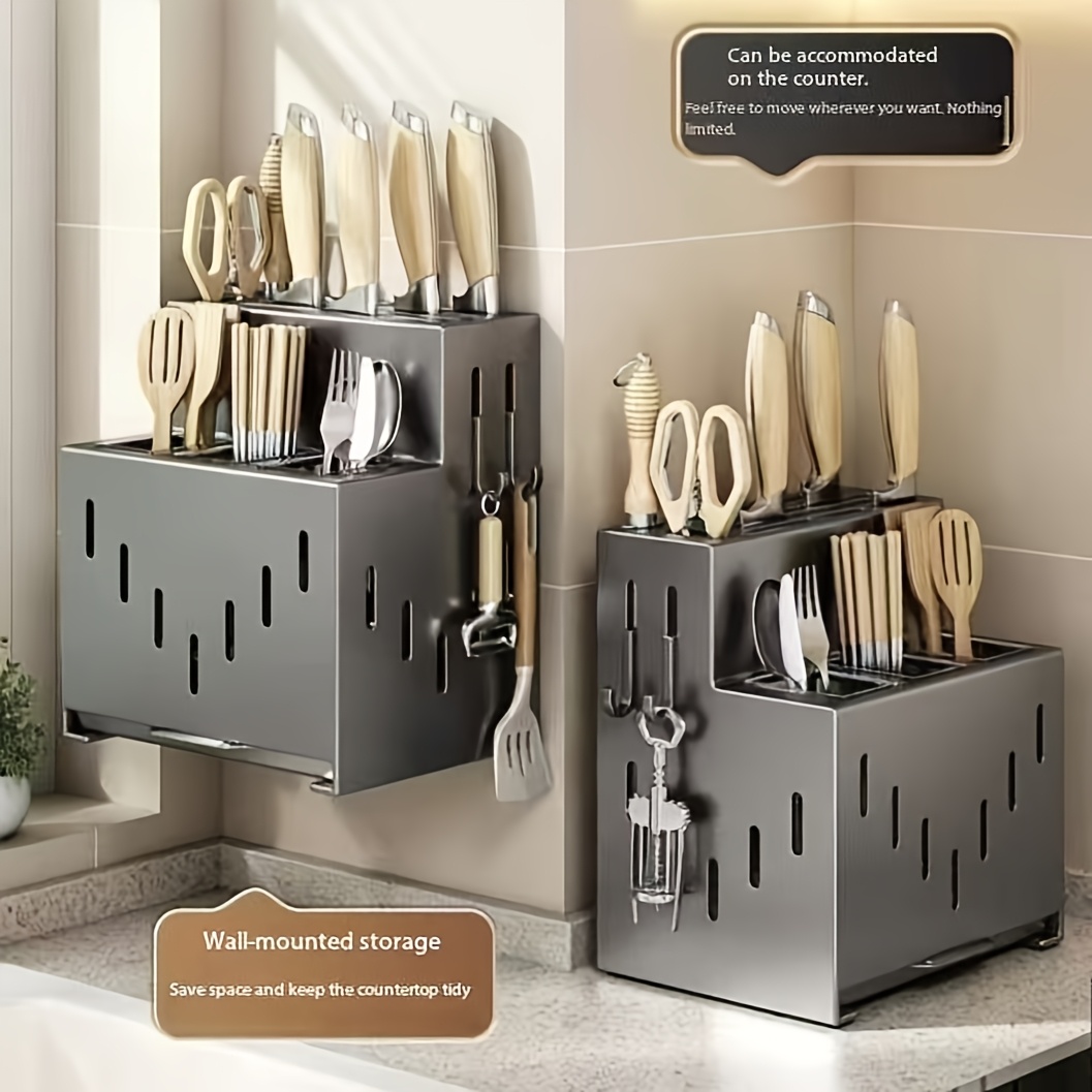 This multifunctional rack can hold knives, spoons, chopsticks, and other kitchen essentials, helping you keep your kitchen organized and efficient. The wall-mounted design saves counter space and keeps your tools easily accessible, making it a must-have for modern kitchens.