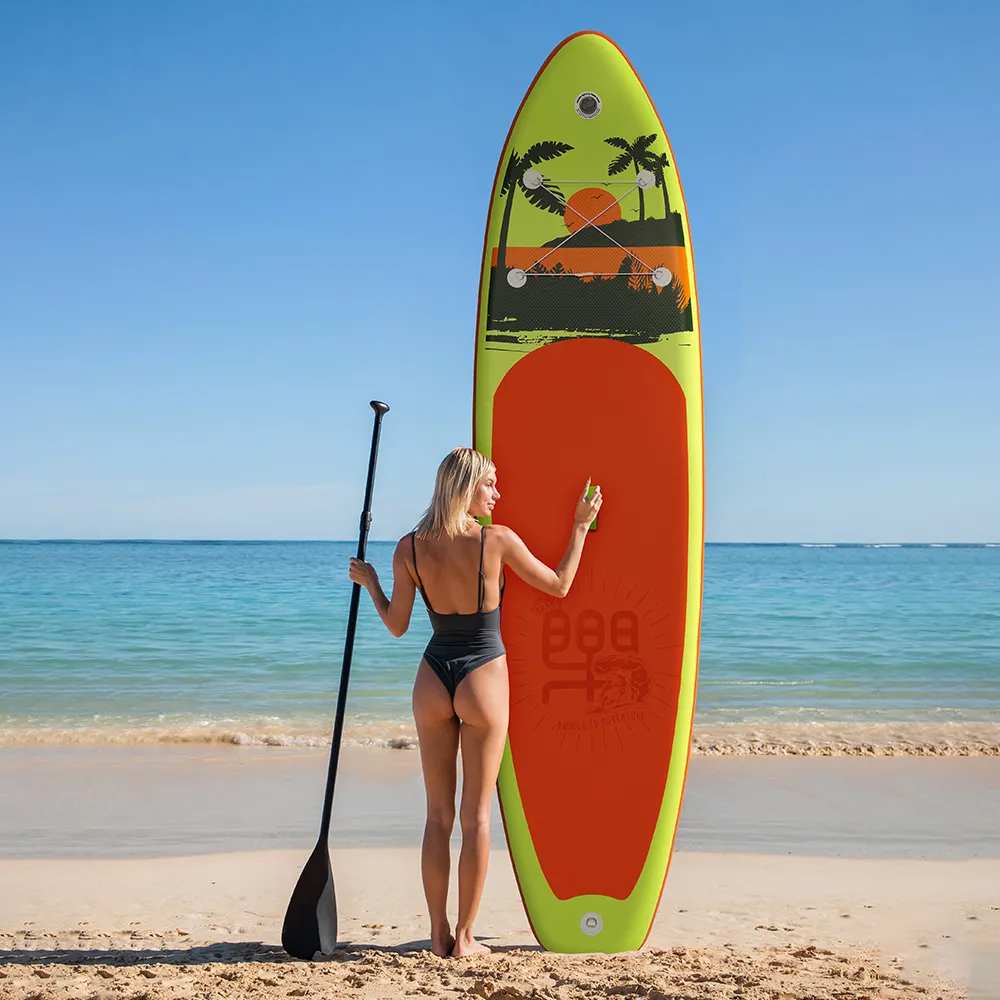 This inflatable surfboard is designed to be incredibly versatile. You can use it for surfing waves, water skiing, or as a stand-up paddleboard (SUP) for a more relaxed experience. Whether you're catching waves on the coast or gliding through calm lake waters, this board adapts to your chosen water activity with ease.