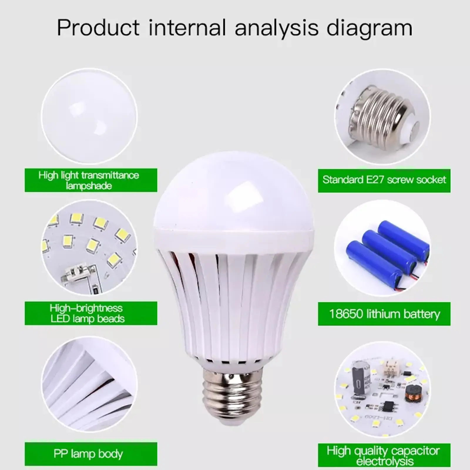 Wattage: 9W, Ships From: CHINA - E27 Energy Saving Intelligent Emergency Rechargeable Lamp Household LED Bulb 15W LED Emergency Light Led Bulb Lighting Lamp