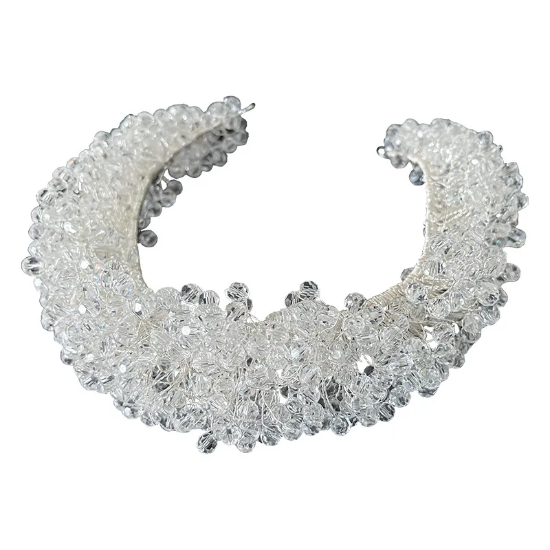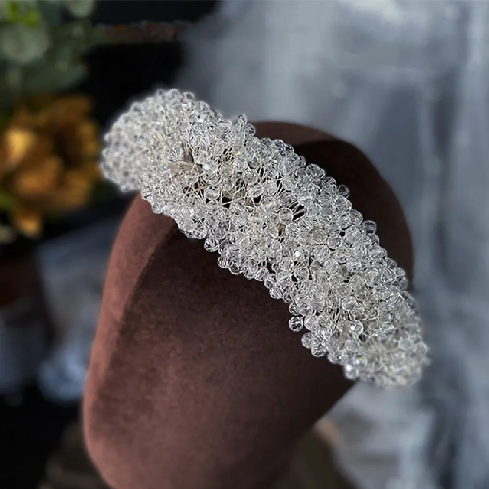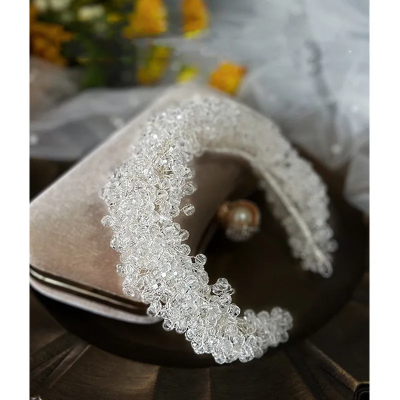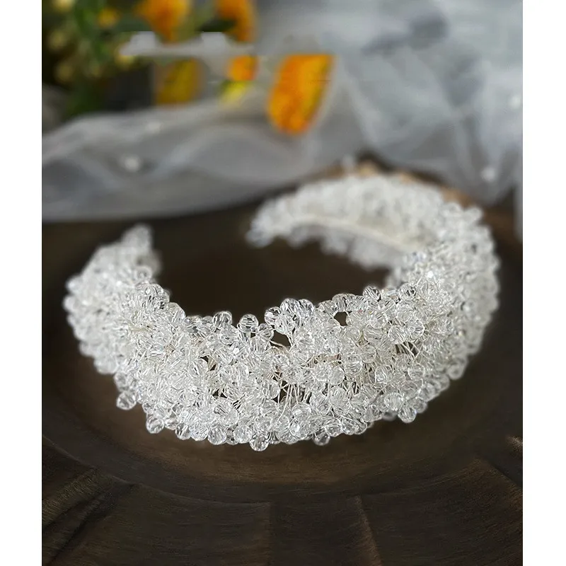 For brides with long, flowing hair, the hairband creates a regal look, framing the face and adding a touch of glamour to your hairstyle. For brides with more simple or minimalist hairstyles, the crystal hairband serves as a focal point, adding a bit of sparkle and elegance without overwhelming your look.