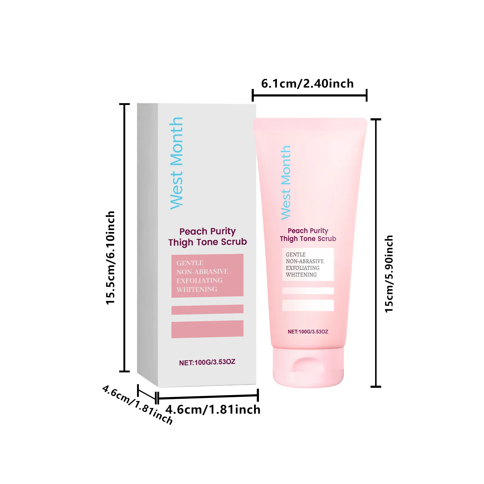 Achieve smoother, brighter skin with the West Month Peach Purity Thigh Tone Scrub, designed to exfoliate and tone your skin gently. This non-abrasive scrub is specially formulated to target the delicate skin on your thighs, helping to even out skin tone, reduce dark spots, and enhance overall skin radiance.